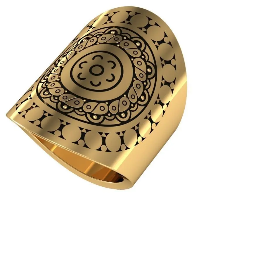 this is smooth band with beautiful sharp carving .it can be used for both men and women.the printing and casting should be sharped for good results.