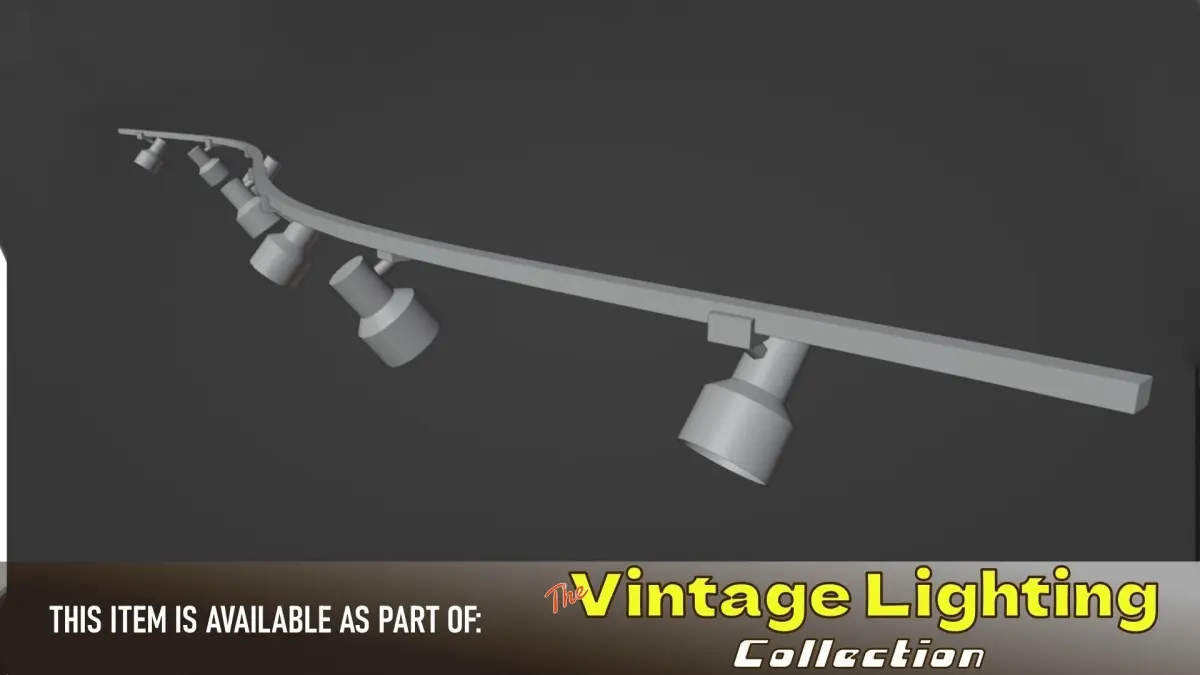 This is a curved ceiling track light, kind of like what you'd see in an 80's living room or maybe a mall. It is as low-poly as possible without sacrificing appearance. No textures or materials are included, as this is a very simple fixture with no surface details. All spotlights and track interface components are movable and aimable from the blender file, but they aren't rigged in any way.