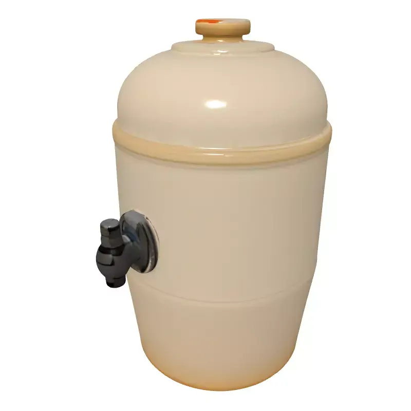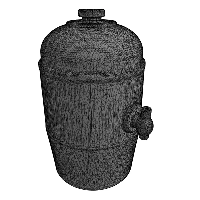 This detailed 3D model represents a vintage-style ceramic or enamel beverage dispenser, complete with a functional-looking metallic spigot and a removable lid. Its classic, cream-colored finish and subtle wear on the base and lid knob give it an authentic, aged appearance, perfect for adding character to any scene. This versatile asset is ideal for a wide range of applications, including enriching game environments such as rustic kitchens, cafes, or outdoor picnic scenes. Architectural visualization projects can benefit from its realistic presence, enhancing interior and exterior renderings with a touch of nostalgia. It is also suitable for use in augmented reality (AR) and virtual reality (VR) applications, providing an immersive and realistic prop. Digital artists will find it valuable for still renders, product visualizations, or as a focal point in various digital compositions. The model features clean topology, ensuring smooth deformations if rigged (though not explicitly rigged here) and efficient rendering. It is fully UV unwrapped for easy texture application and is designed with PBR (Physically Based Rendering) textures in mind to capture its distinct material qualities and subtle imperfections. This model is optimized for both real-time applications, making it game-ready, and is equally suitable for high-quality static renderings. Supported file formats typically include GLB, OBJ, STL (for display models), ABC, DAE, FBX, USD, and PLY, ensuring broad compatibility across various 3D software and engines.