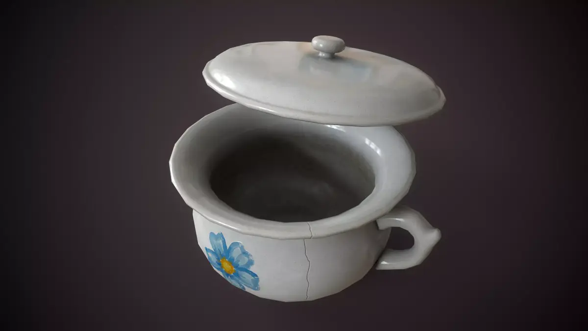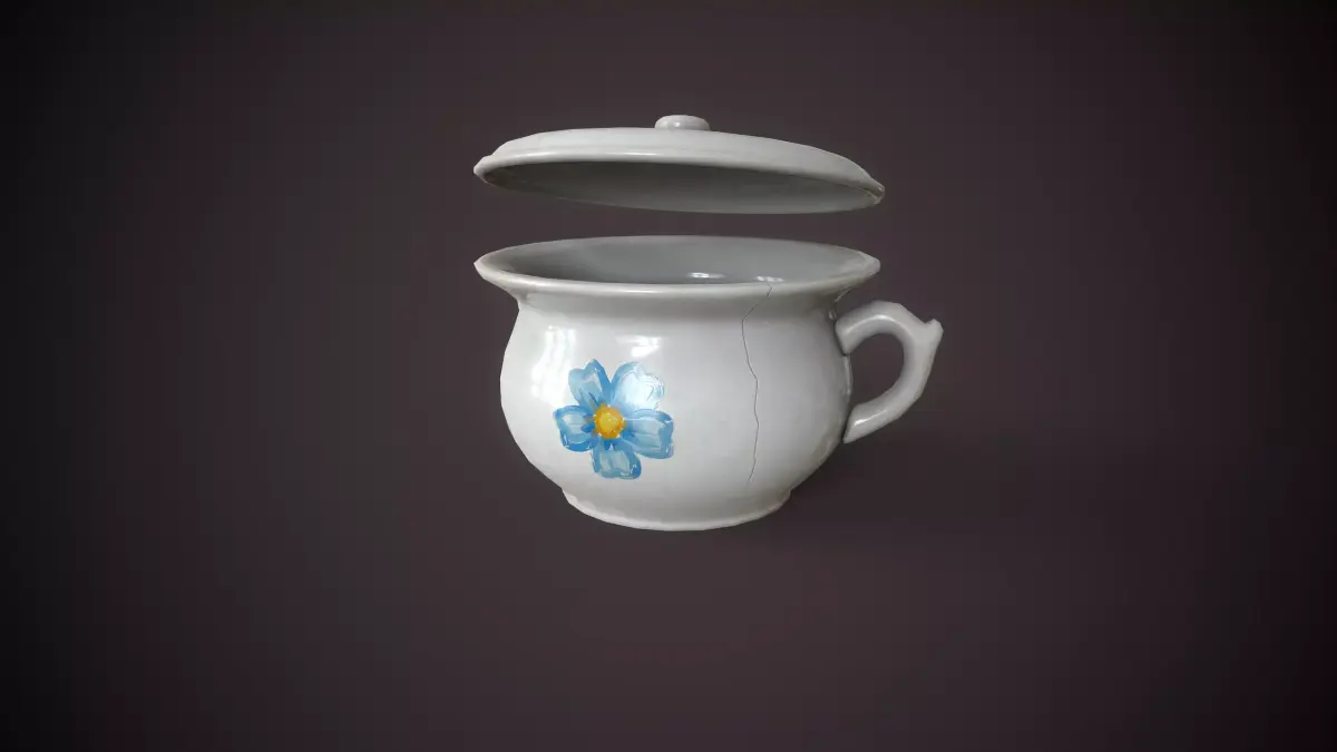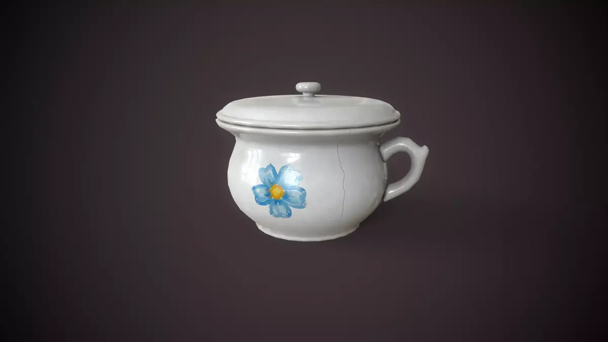 including a fine crack on the side and subtle staining inside. Ideal for historical or rustic interior scenes.