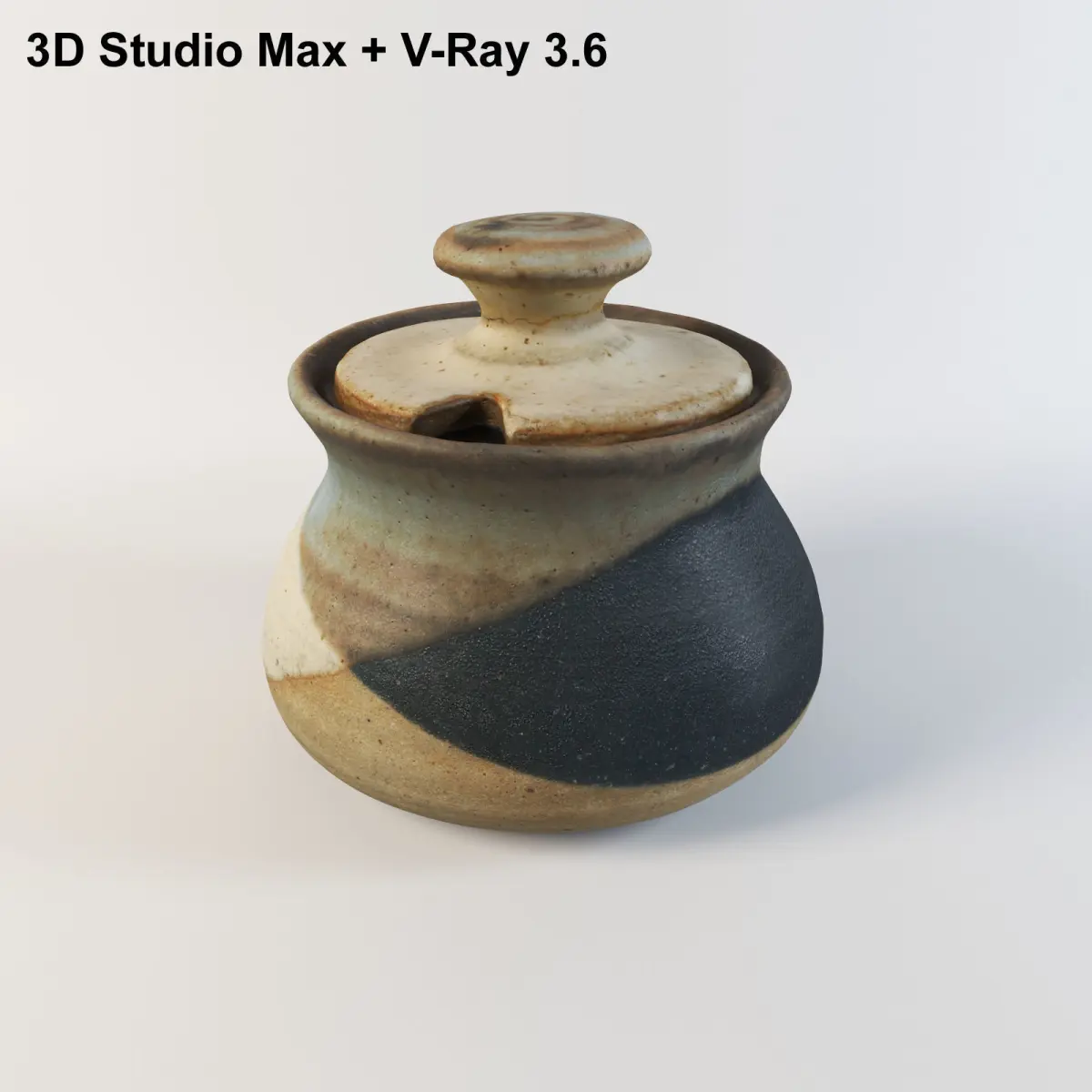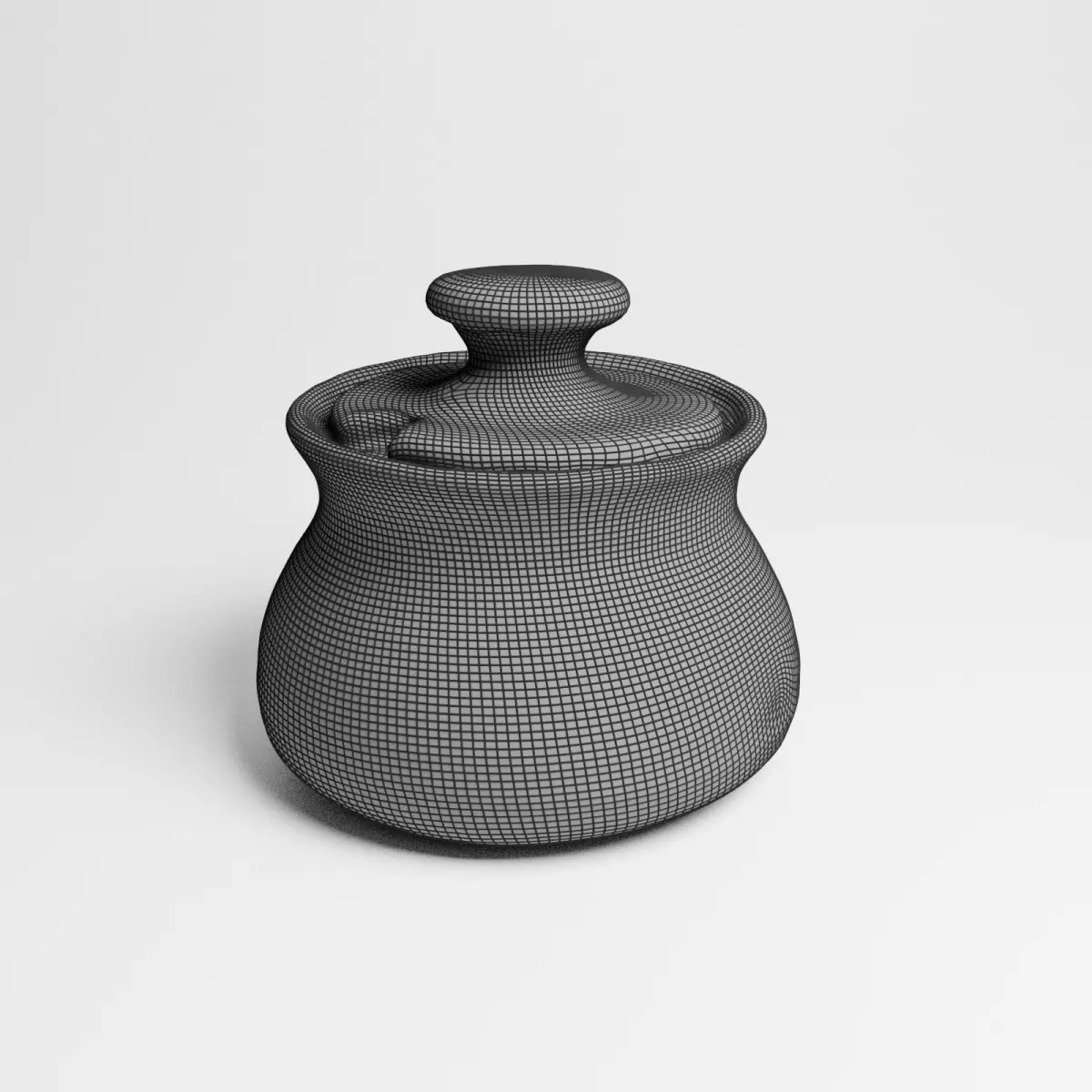 High quality scanned model of a ceramic sugar jar to add more details and realism to your rendering projects.