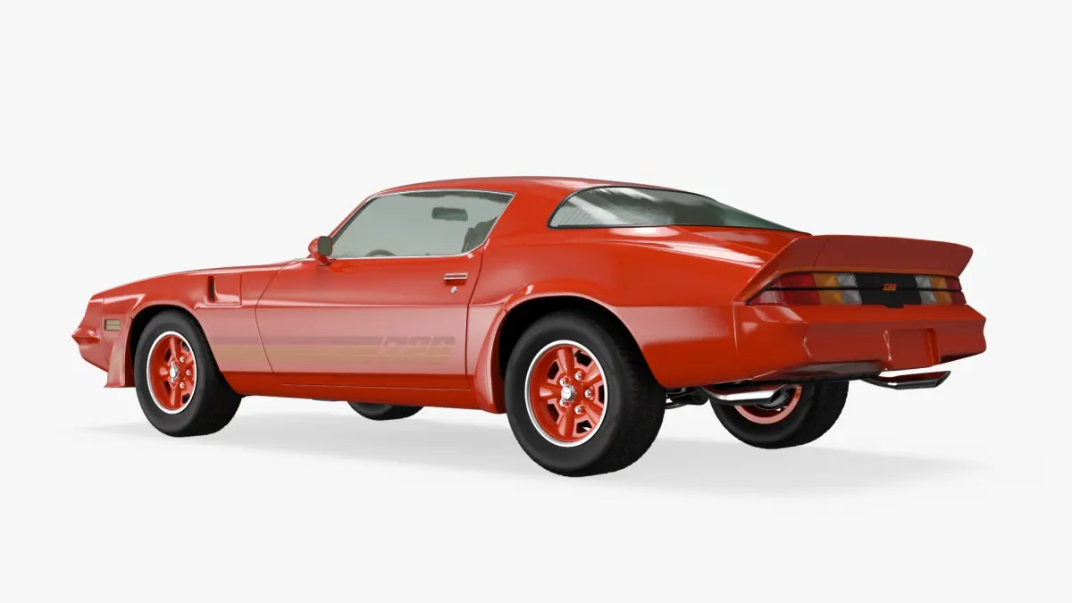 Vintage Chevrolet Camaro Z28 1980 Red Rigged for Cinema 4D is a 3d model of a classic American muscle car, known for its powerful performance and iconic design from the late 1970s.