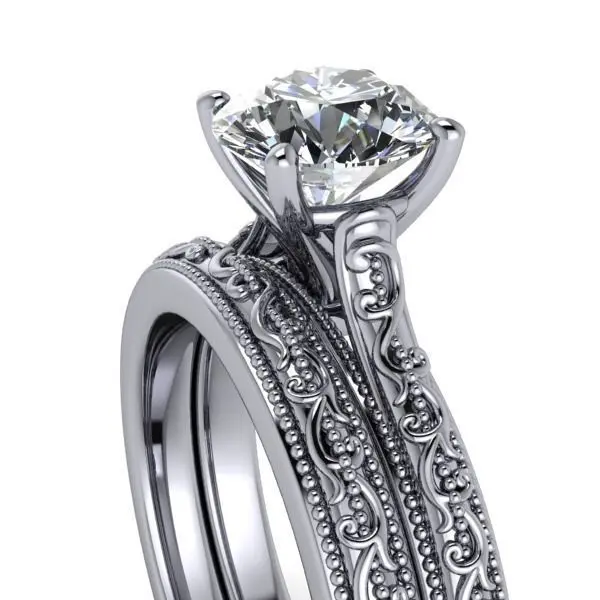 Vintage Classic 1 Carat Dia Solitaire Bridal wedding band set 3D print model
