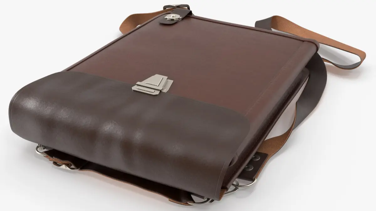 Vintage Cold War Army Map Case with Shoulder Strap Brown is a three-dimensional model of ancient (old time) military shoulder bag used during mid-20th-century field operations.