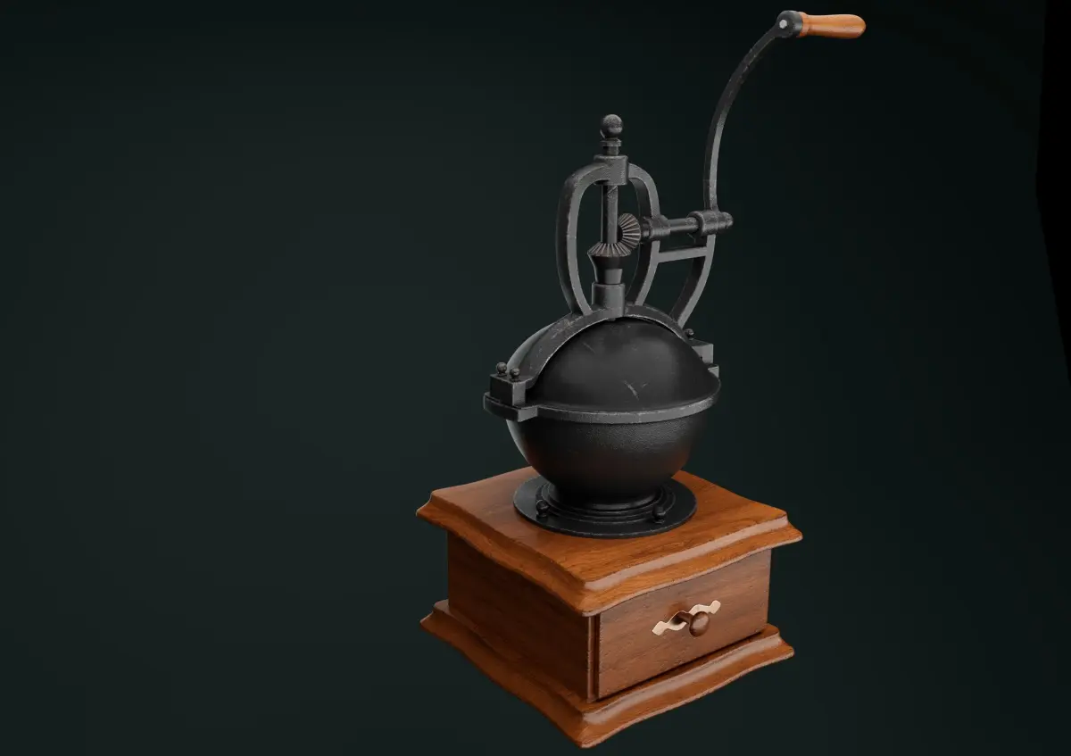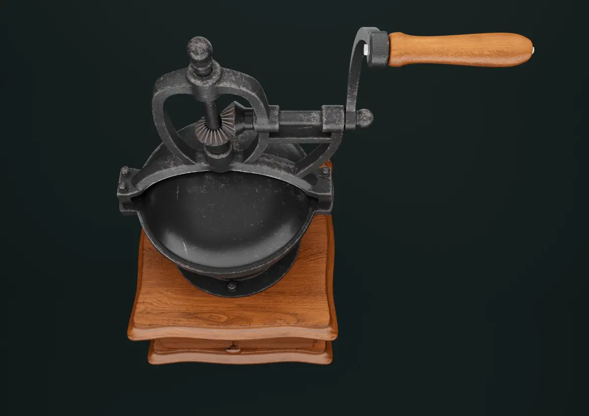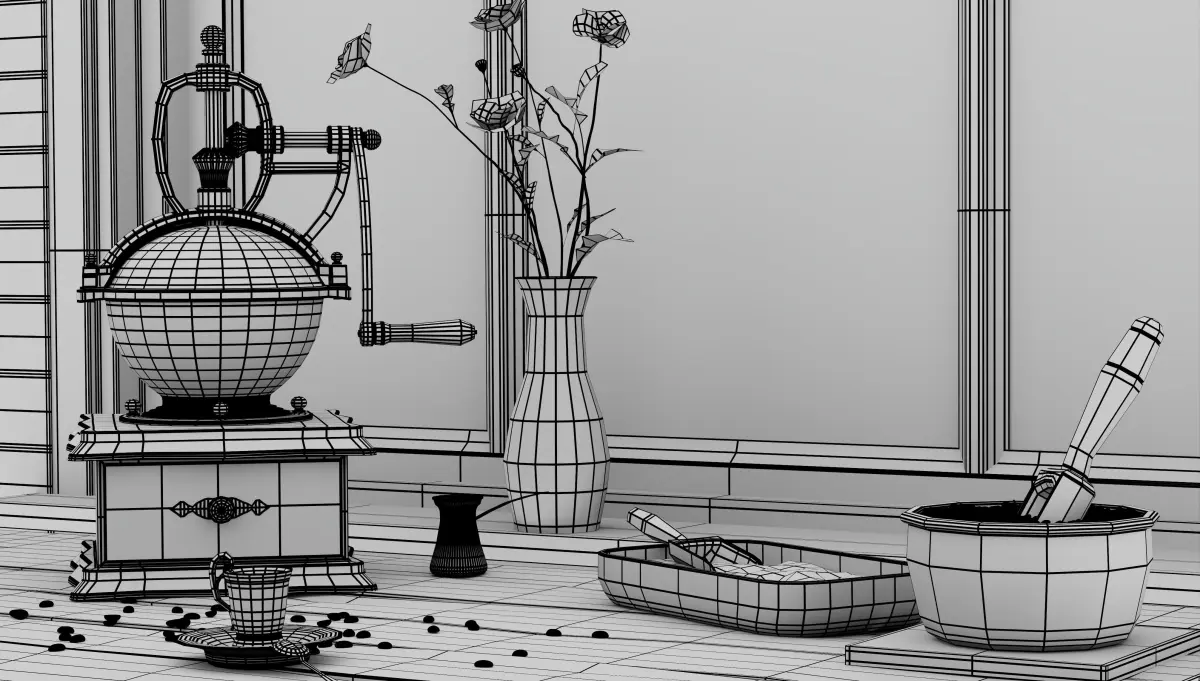 The rendering is composed of a vintage cast-iron coffee grinder and coffee mug, cup and saucer with a tea spoon, trays with ground coffee and coffee beans, and a porcelaneous vase.Update your virtual home with classic pieces that feel timeless. Vintage meets antiquarian styling with scratches on cast-iron coffee grinder and classical taste porcelain ware. This 3D model has a fully textured, detailed design that allows for close-up renders. Every model has been checked with the appropriate software.Important notice: camera and light setting include only for primary view.*IMPORTANT NOTICE: PLEASE MAKE SURE THAT YOU'VE GOT THE LATEST VERSION OF ARCHIVING SOFTWARE.Note: The product comes without scene, camera or lights, including only 3D model. Camera and lights setting include only for primary view in koffemachine.mb .texture set including :/ arnold/ vray/pbr. Subdivision ready.