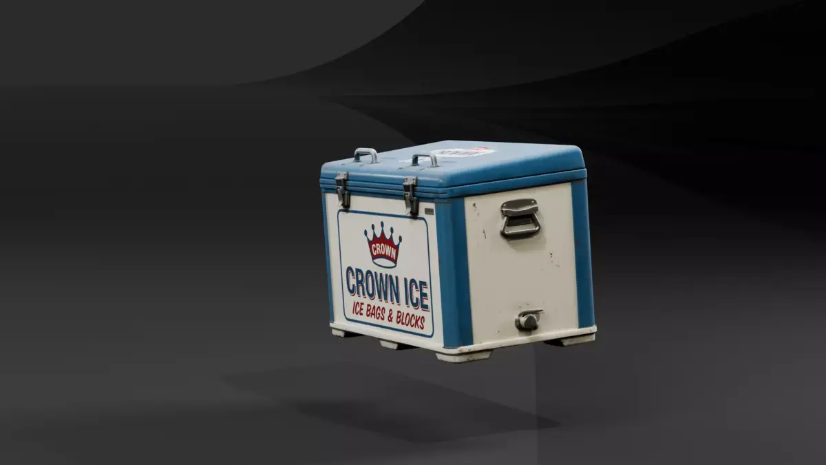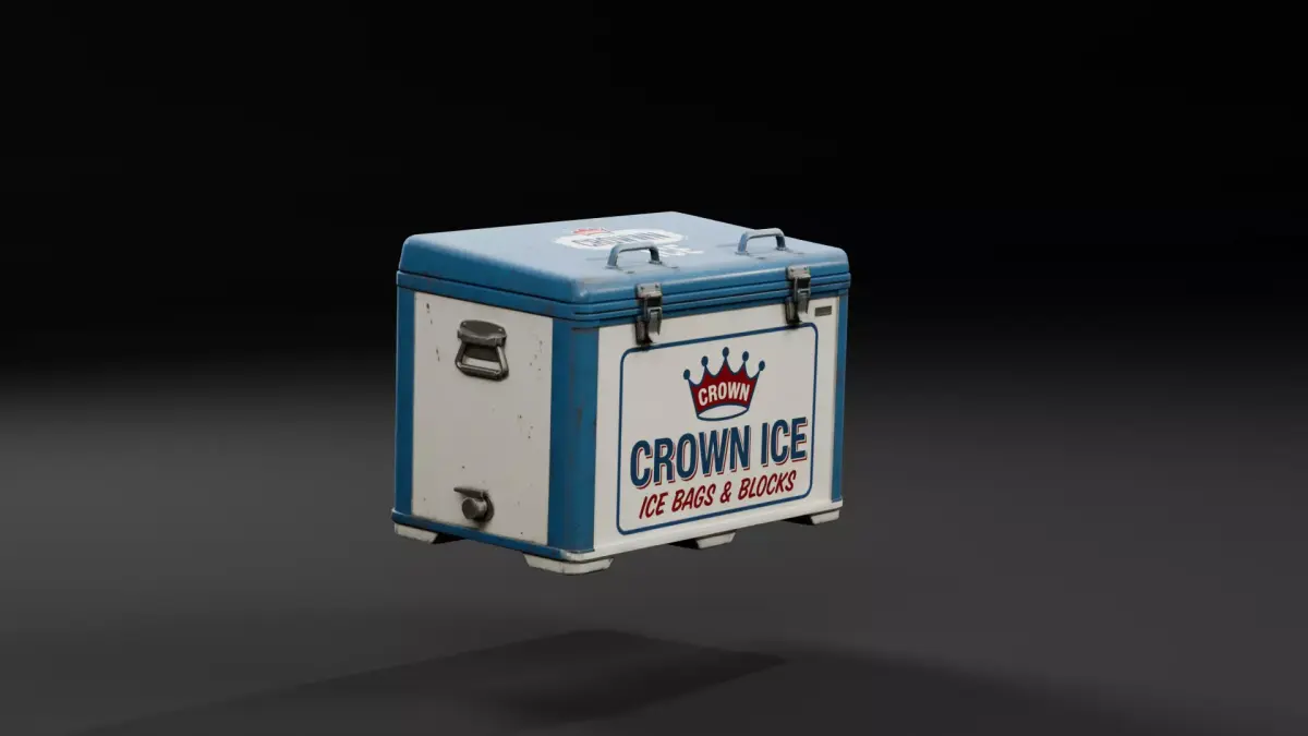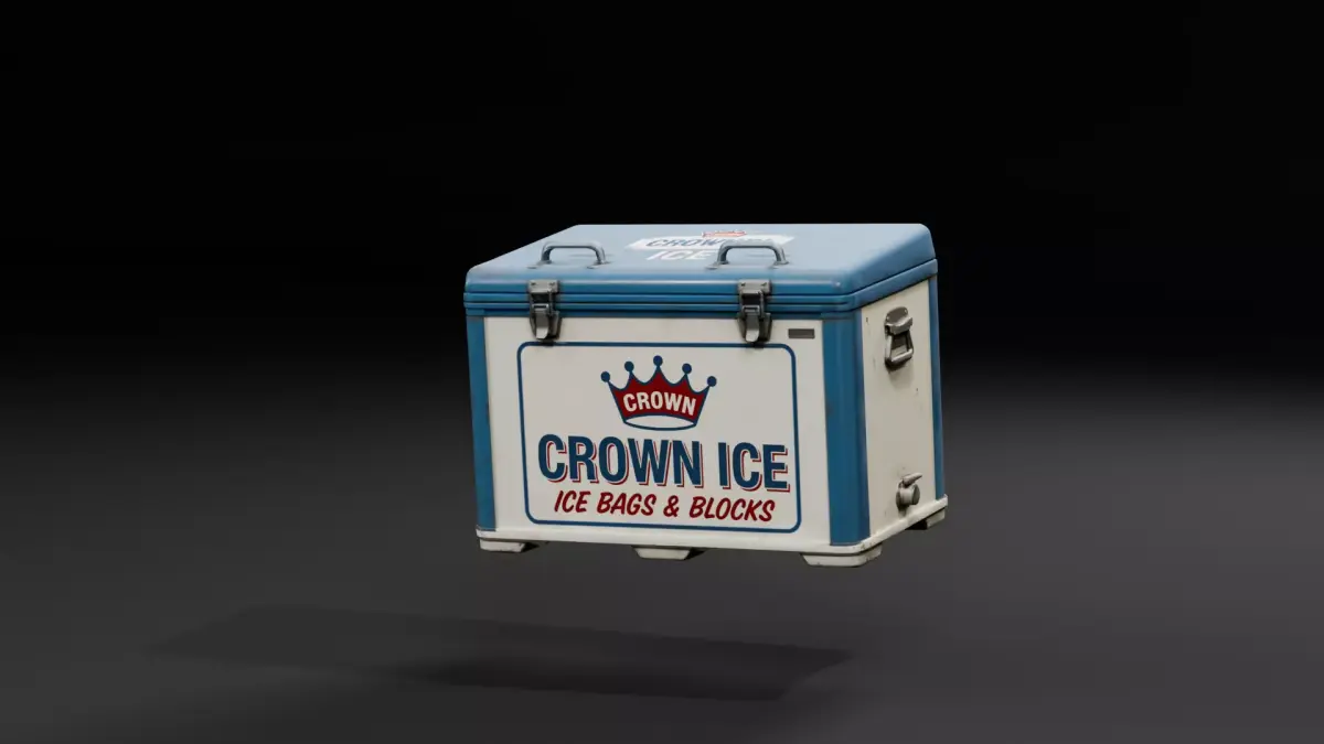 Add realistic detail to your convenience stores, retro gas stations, campsites, or post-apocalyptic environments with this weathered vintage ice cooler.