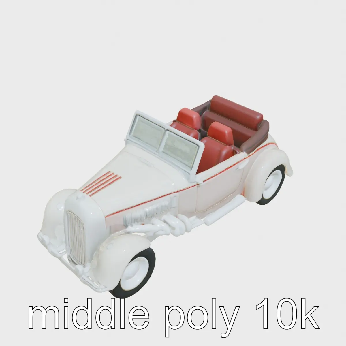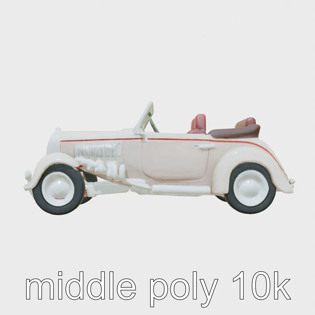 This 3D model features three levels of detail: low-poly, middle-poly, and high-poly, enabling use in production rendering (such as 3ds max, Maya, Cinema 4D, Blender, V-Ray, Corona, Cycles, and more), game engines (Unity and Unreal compatible), and interactive presentations. Ideal for automotive visualizations, classic car recreations, or toy design demonstrations. The model's textures are PBR, Diffuse, NormalMap, and reflection/roughness/metallic, suitable for any modern rendering engine. All models are accurately unwrapped with no overlapping UVs. All textures are 4096*4096 in size. Enjoy this detailed and versatile model and consider liking or leaving a comment if you appreciate the design.