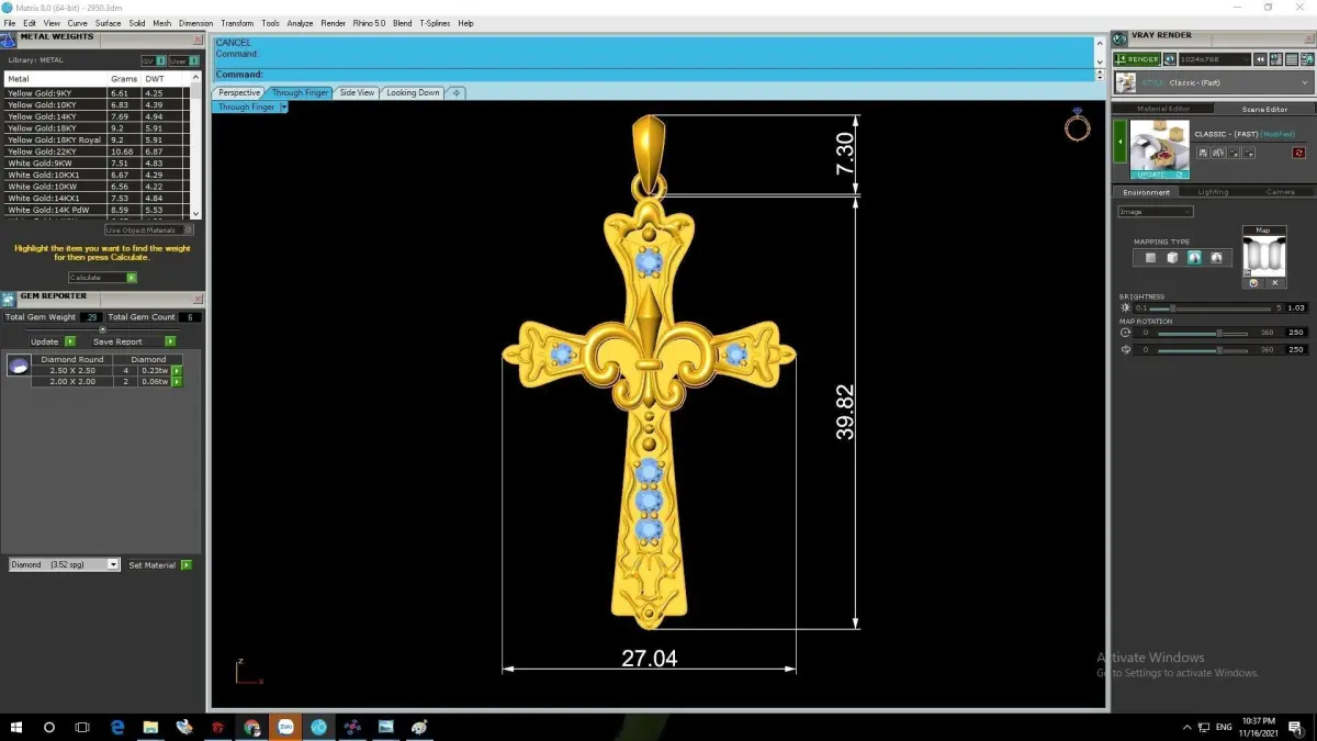 The 3D model is optimized for jewelry production with clean geometry, correct wall thickness, accurate stone seats, and detailed technical views. Measurement screenshots include full dimensions, gemstone specifications, and casting-ready structure, allowing jewelers to manufacture the piece with precision. The pendant is suitable for gold, silver, or platinum, and can be paired with natural or synthetic gemstones.