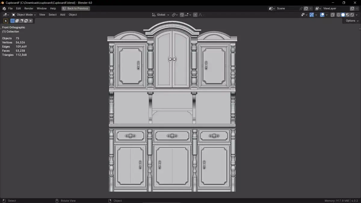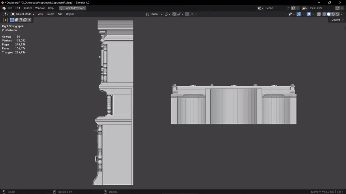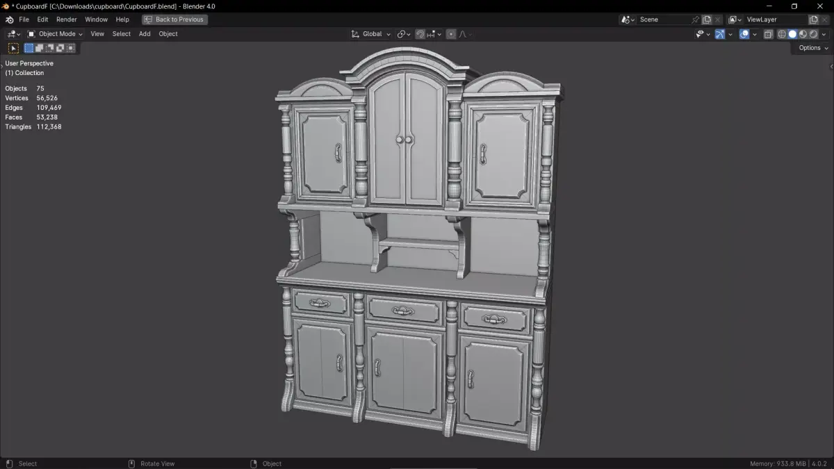 3D model of a vintage-style cupboard.