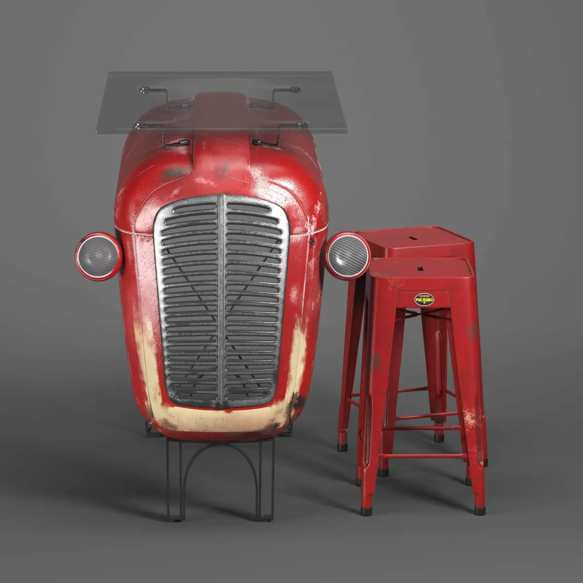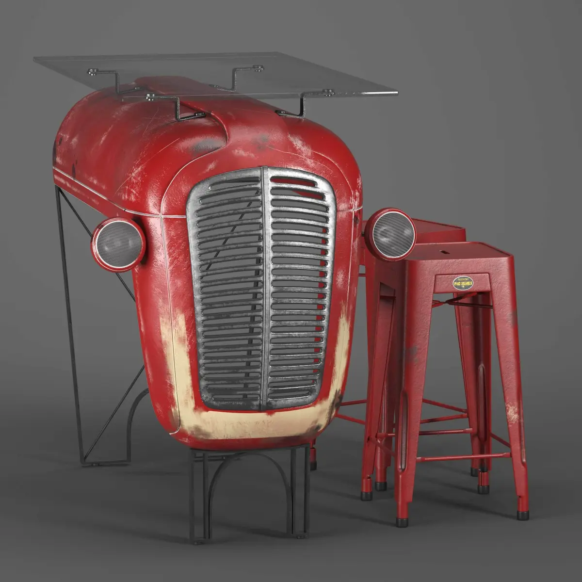 vintage massey ferguson tractor upcycled into design bar.The model is created as standard quad topology and can be easily changed in any forms.