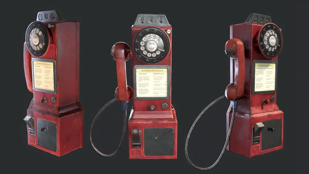 Dial Pay Phone was used in USA in 1960's years. This type of public phone would have been located in hotel lobbies, train stations and other public places. I tried to recreate look after some time been used but still in work condition. Model i made in 3ds max and texturing in substance painter.