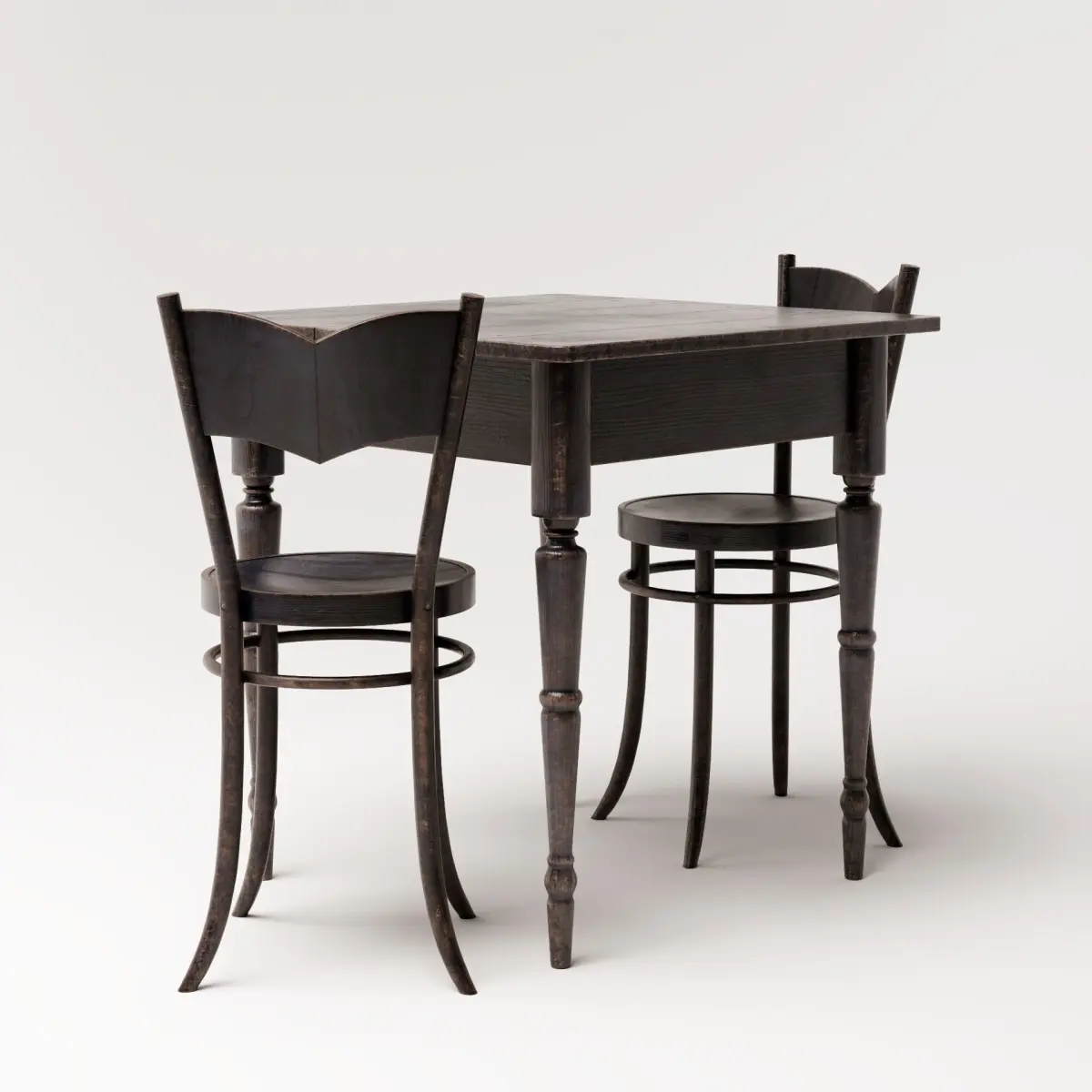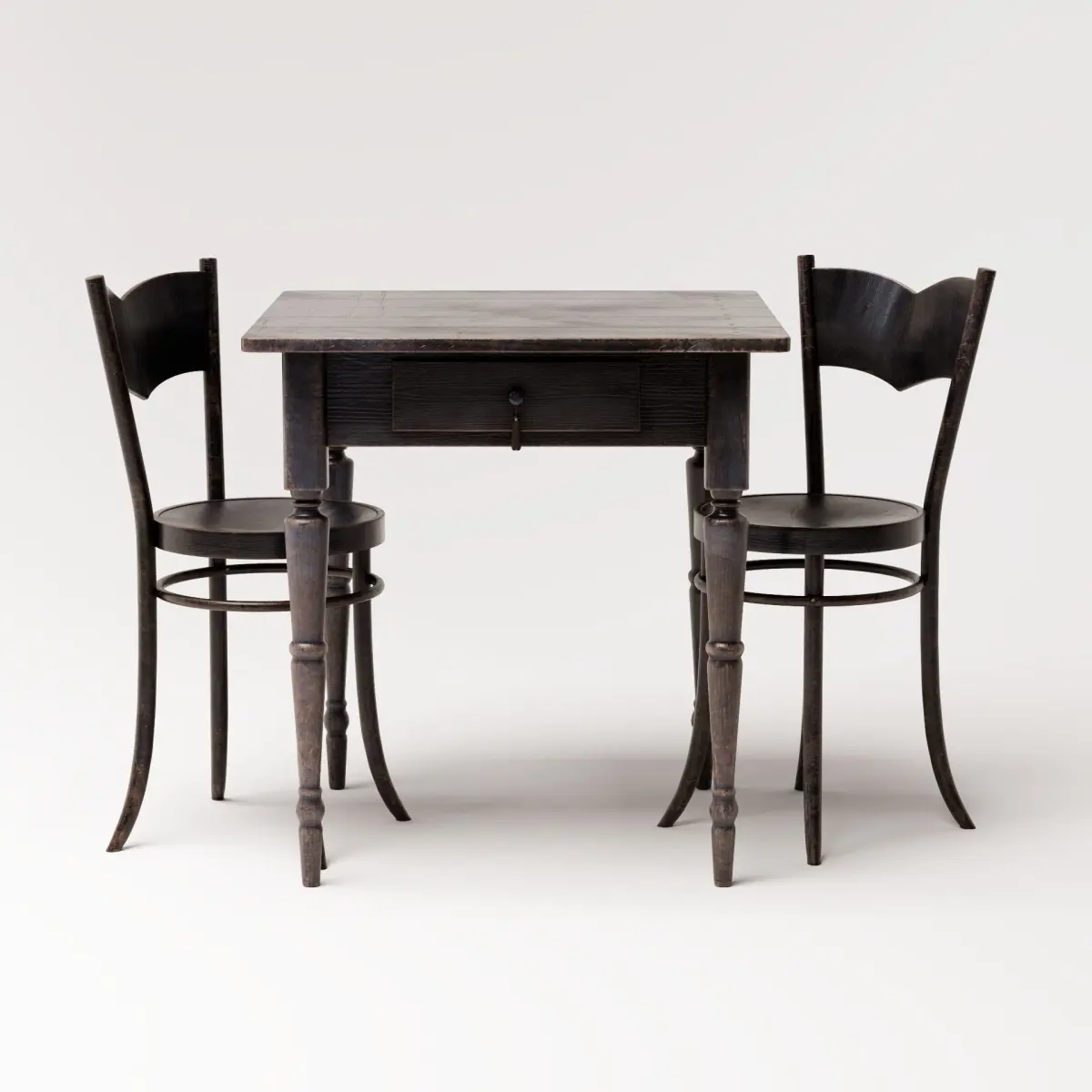 Vintage lackered and patinated dining set in a blue tint.