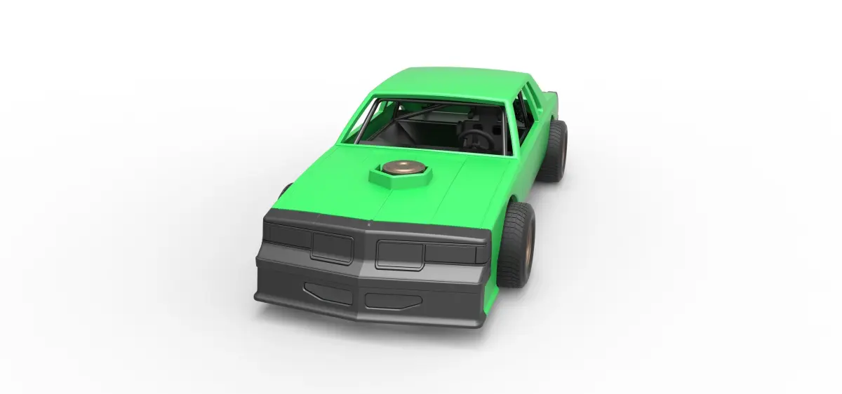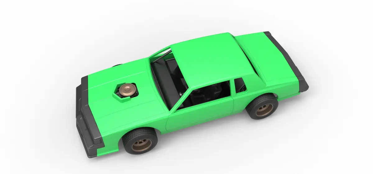 The model consists of parts: Body, Engine, Filter cap, Filter, Left exhaust pipes, Radiator, Right exhaust pipes, Rims, Seat, Shell front part, Shell main part, Shell rear part, Shifter, Steering wheel, Tank, Tires.