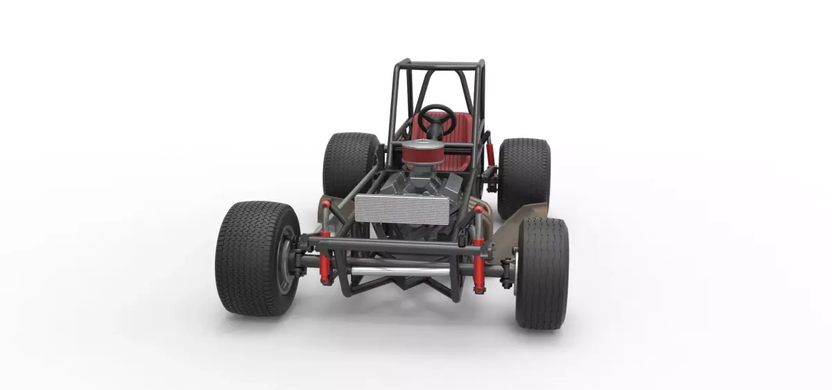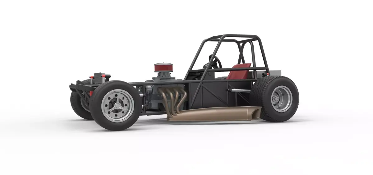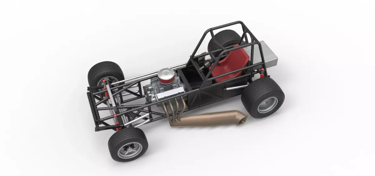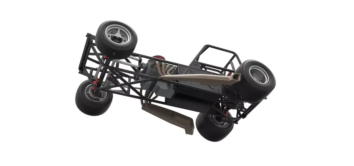 The model consists of parts: Air filter cap, Air filter, Centerlock nuts, Engine, Frame, Front left rim, Front left tire, Front right rim, Front right tire, Front rim hubs, Left exhaust, Radiator, Rear left tire, Rear right tire, Rear rims, Right exhaust, Seat, Shifter, Steering wheel, Tank.
