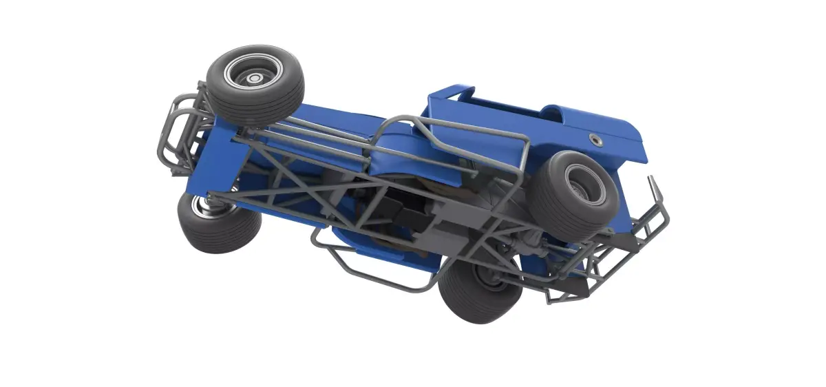 The model consists of parts: Air filter cap, Air filter, Engine, Frame, Front left rim, Front left tire, Front right rim, Front right tire, Fuel cap, Headrest, Hood, Left exhaust, Radiator, Rear left tire, Rear right tire, Rear rims, Right exhaust, Seat, Shell front part, Shell left rear part, Shell main part, Shell right rear part, Shield, Shifter, Steering wheel, Tank.