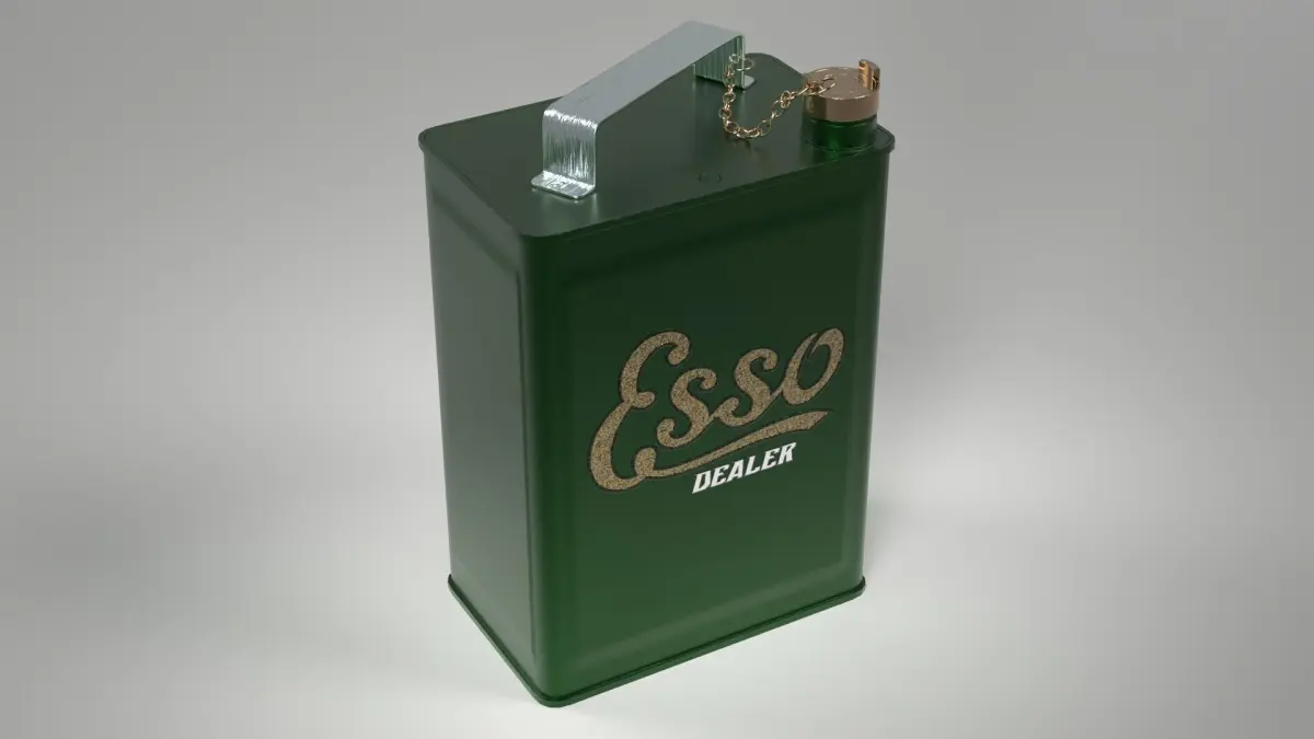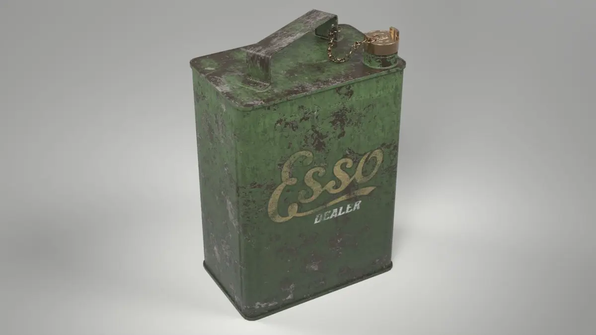 A 3D model of a Vintage Esso Petrol/Gas Can. PBR Metal-rough workflow used. All maps/texture are included. Includes two PBR texture sets, one worn the other a restored version.