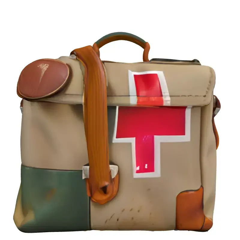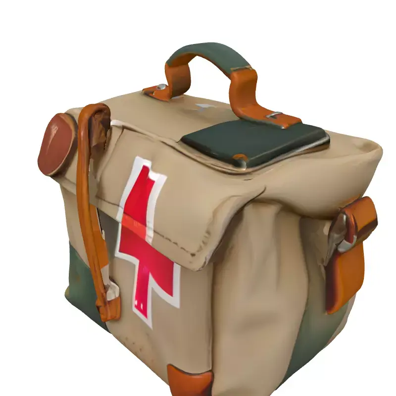 This is a meticulously crafted 3D model of a vintage-style first aid kit bag, featuring a classic canvas texture with authentic leather detailing and a distressed red cross emblem. The model perfectly captures the aesthetic of an old, well-used medical satchel, making it an ideal asset for a wide range of digital projects. It is fully optimized for seamless integration into real-time applications such as game development across various genres, including historical, survival, adventure, or RPG settings, as well as for immersive AR/VR experiences. Beyond interactive environments, this versatile model is also excellent for static renderings, such as architectural visualization, creating compelling digital art scenes, or serving as a detailed prop in virtual film productions. The model boasts clean, efficient topology, ensuring smooth performance and easy manipulation. It is fully UV unwrapped with no overlapping UVs, prepared for PBR texture workflows to deliver photorealistic results. The weathered materials, including fabric wear, faded paint, and aged leather, are rendered with high-resolution textures, providing rich visual fidelity. Supported file formats include GLB, OBJ, FBX, USD, DAE, and ABC, offering broad compatibility across most 3D software and game engines. This asset is designed to add a touch of authentic realism and historical character to any virtual scene.