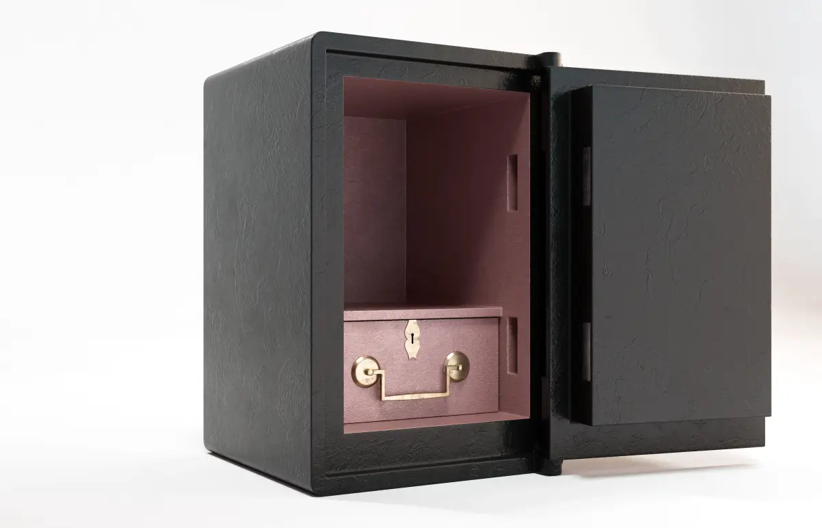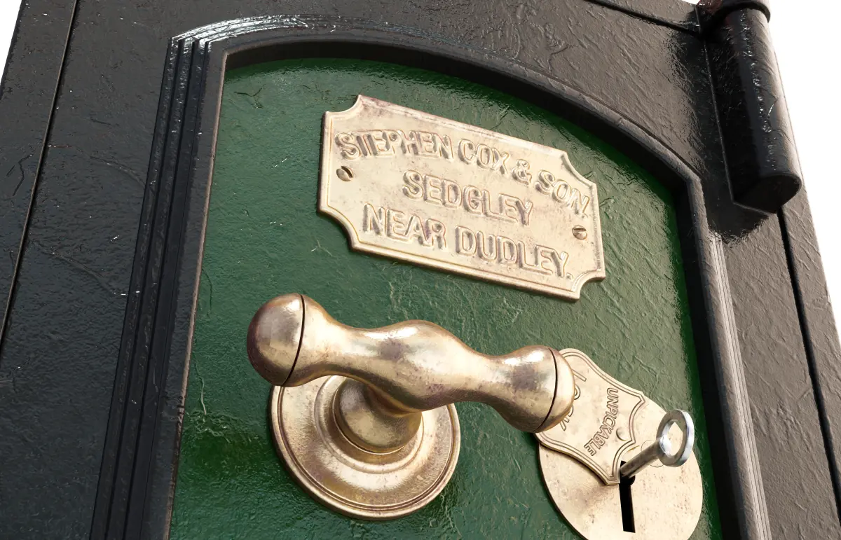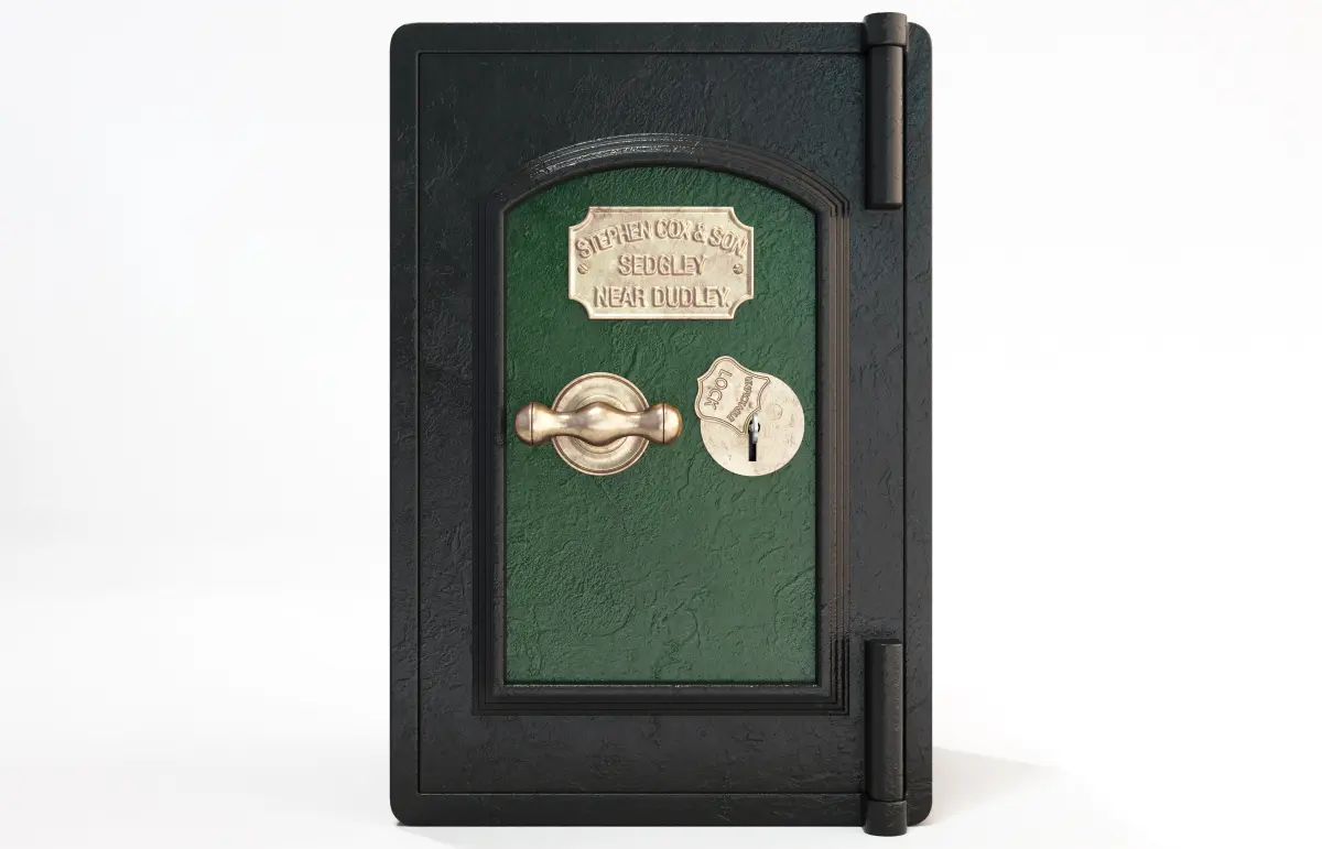 A solid cast iron floor safe with brass fittings made by Stephen Cox & Son