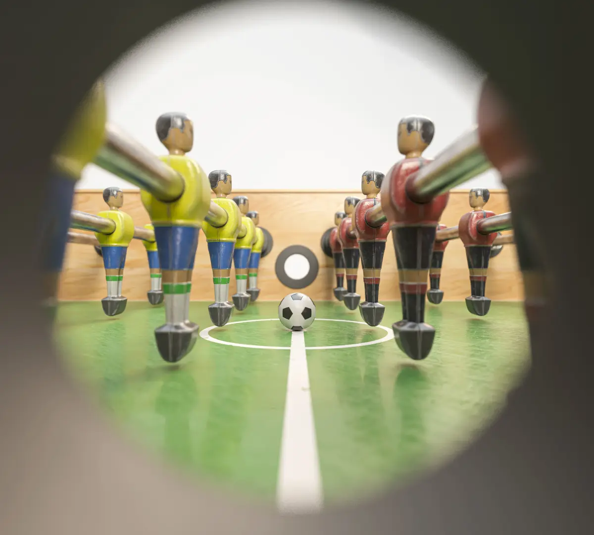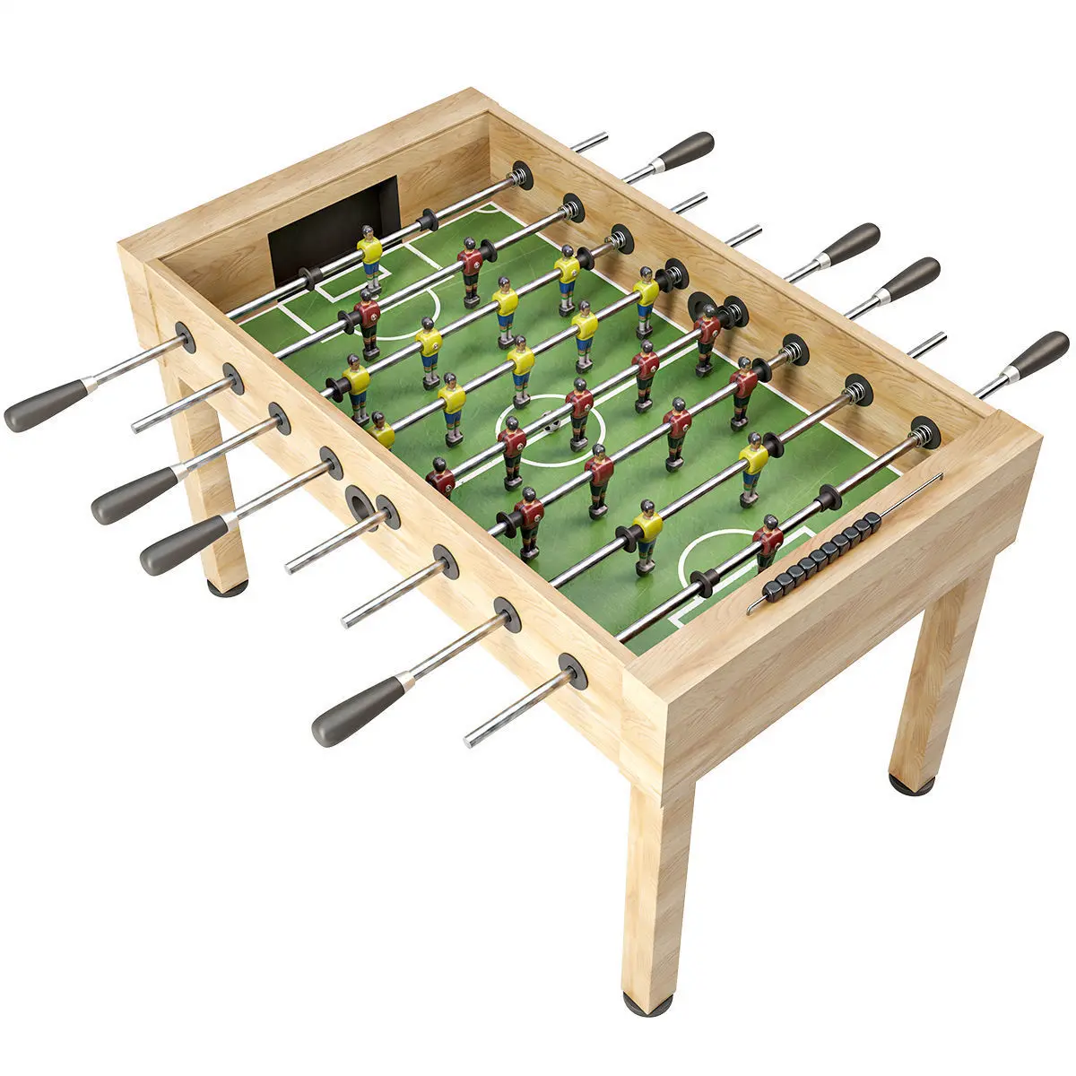 A vintage styled wooden foosball table or table-football with teams made of metal and UV unwrapped. Contains procedural and parametrized meshes which may translate to higher poly count than stipulated if converted to other formats.
