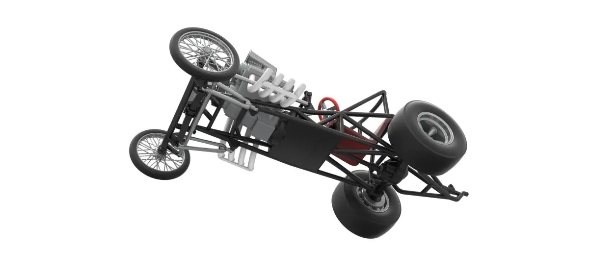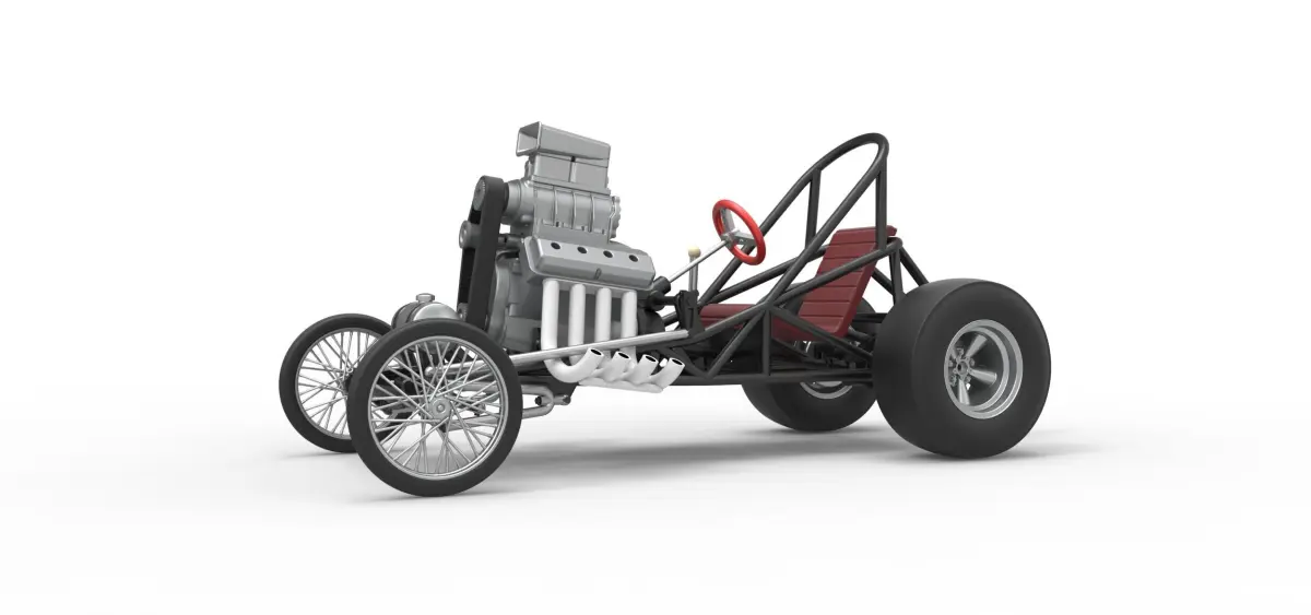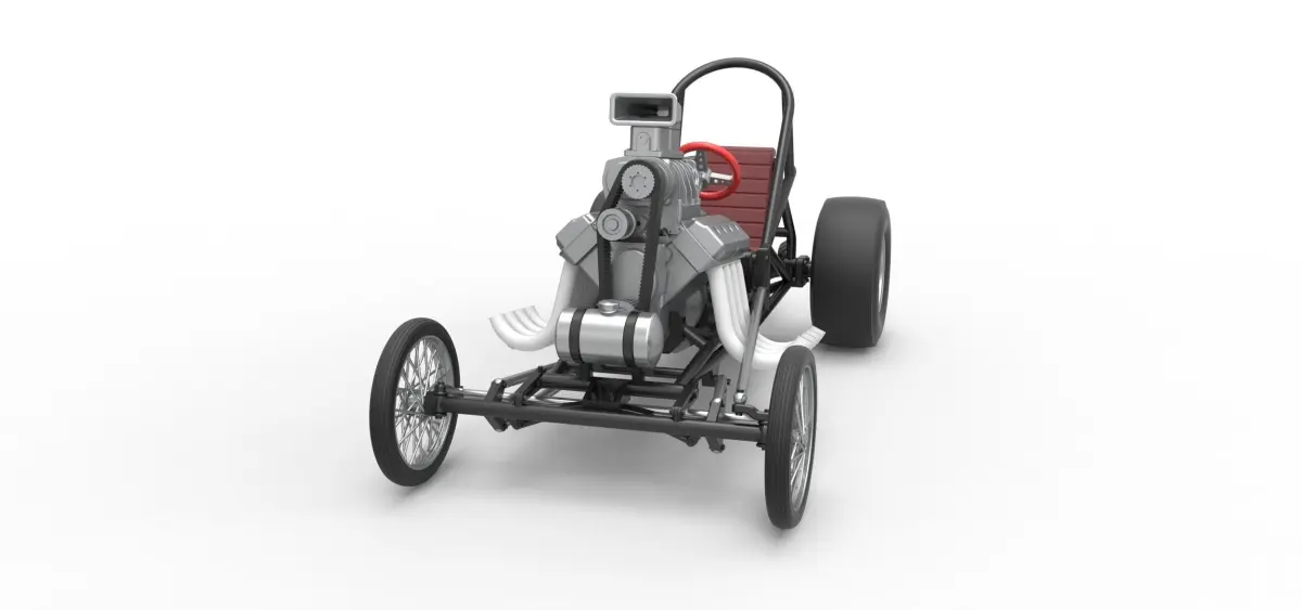 The model consists of parts: Engine, Frame, Front rims, Front tires, Left exhaust, Rear rims, Rear tires, Right exhaust, Scoop, Seat, Shifter, Steering wheel, Tank.