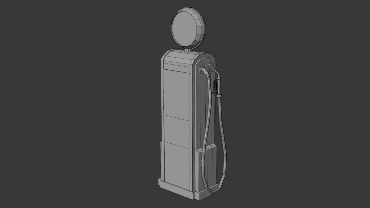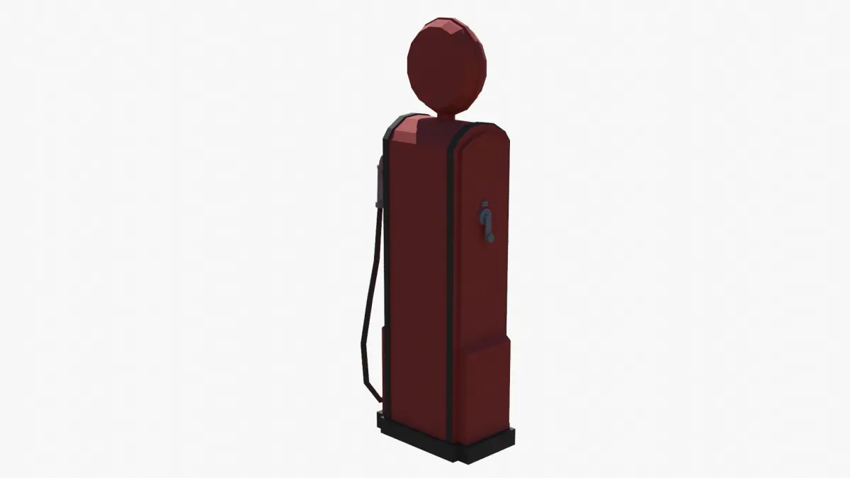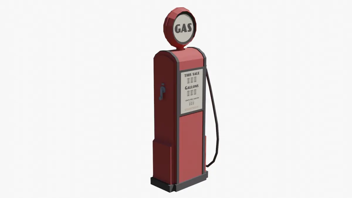 This is a low poly 3D model of a vintage gas pump created in Blender.The model is provided in the following formats: .FBX, .OBJ, .GLB and .BLEND (native Blender file).All Textures are in a ZIP file.Only quads, no n-gons, no triangles.The model is PBR and game ready.The model is real world scaled.All parts of the gas pump and materials are named properly.