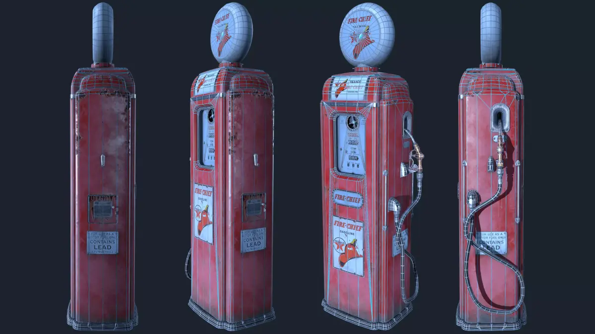 High-quality low poly 3D model of a vintage gas pump featuring aged, realistic textures.Designed to work perfectly in close-ups as well as high-quality renders, this asset is fully game-ready and suitable for use in Unity or Unreal Engine projects.