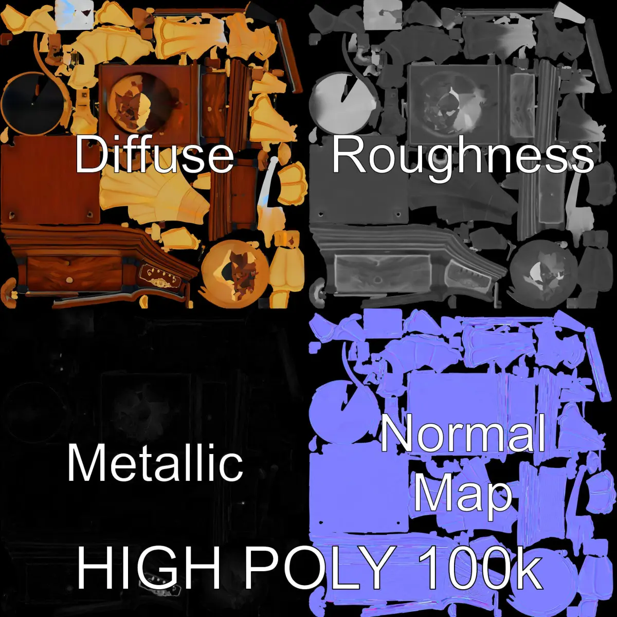 This Vintage Gramophone 3D Model Pack features three levels of detail: low-poly (1000 triangles for mobile), middle-poly (10,000 triangles for environments), and high-poly (100,000 triangles) for production rendering. It's suitable for 3ds Max, Maya, Cinema 4D, Blender, Unity, and Unreal Engine, providing the flexibility needed in various applications. The gramophone's design, with intricate wood textures and metallic details, makes it ideal for historical or classical settings, game environments, and virtual museums.