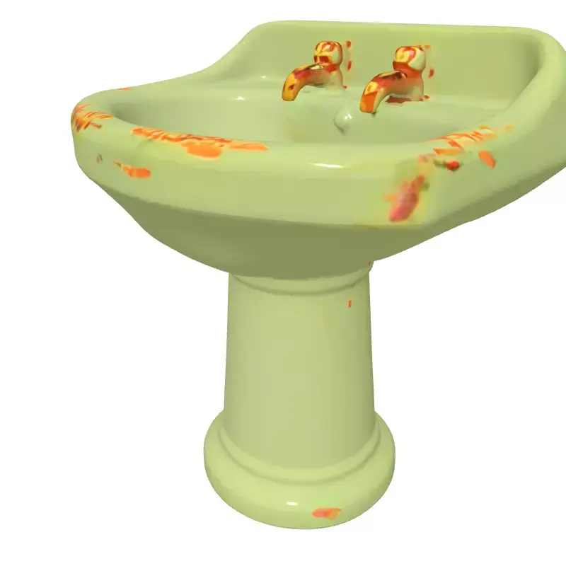 This highly detailed 3D model represents a vintage green pedestal sink, meticulously crafted with an authentic distressed enamel finish and aged brass taps. The model captures the charm of a bygone era, making it perfect for adding a touch of retro aesthetic to any digital project. It is ideal for a wide range of applications, including historical architectural visualization projects, realistic game environments requiring period-accurate assets, immersive AR/VR experiences, or as a distinctive prop in animated films and digital art scenes. The model comes with clean topology and is efficiently UV unwrapped, ensuring seamless texture application and optimal performance. PBR (Physically Based Rendering) textures are included to deliver realistic material properties and wear, reflecting the distressed green enamel and metallic finishes accurately under various lighting conditions. While optimized for real-time applications like games and virtual reality, its high-quality detailing also makes it suitable for high-resolution static renderings. Supported file formats include GLB, OBJ, STL, ABC, DAE, FBX, USD, and PLY, providing versatility across different 3D software and engines.