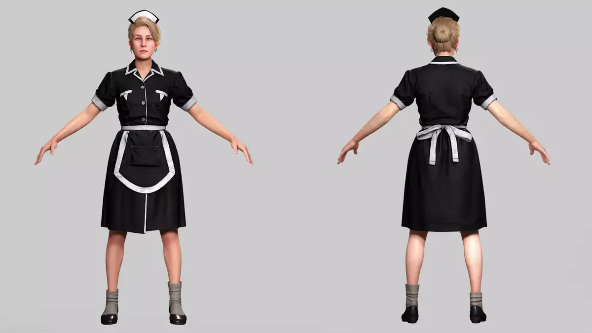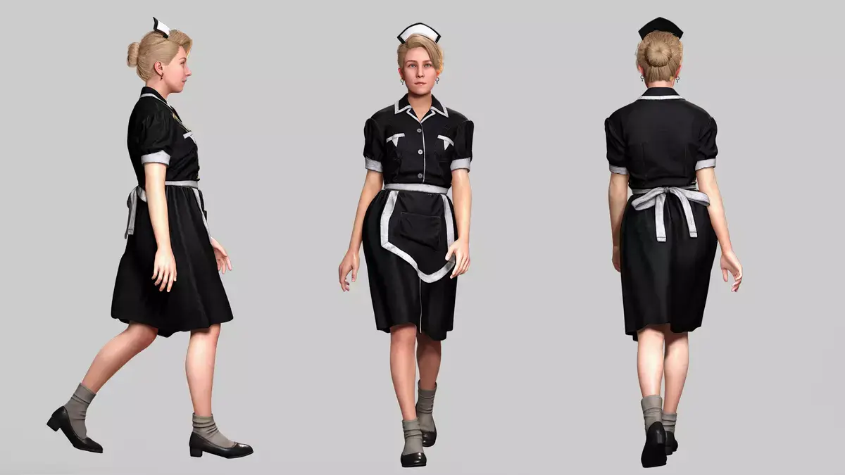 Vintage Housekeeper Woman Game Ready Model Free low-poly 3D model