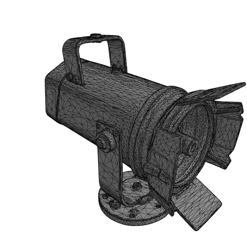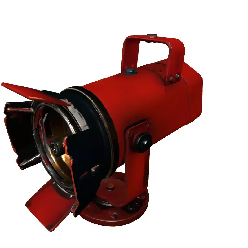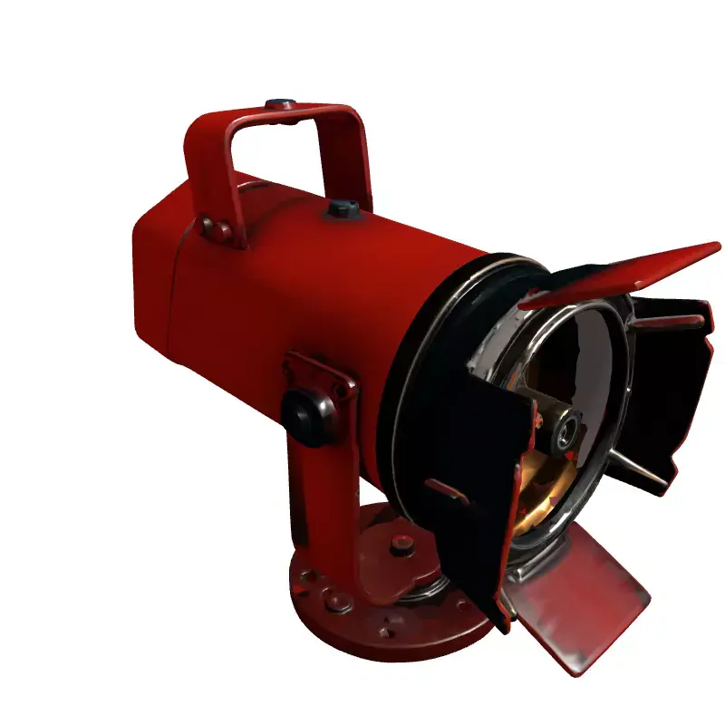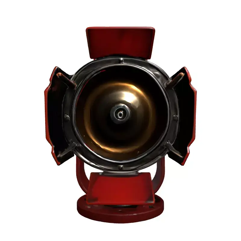 This highly detailed 3D model presents a vintage industrial studio spotlight, meticulously crafted to evoke the classic aesthetic of old film sets or theatrical stages. Its robust design features a distressed red metallic casing, intricate golden internal reflectors, and adjustable black barn doors, capturing an authentic, aged look. This model is perfect for a wide range of creative projects, including immersive game environments as an interactive prop or static background element, compelling architectural visualizations for industrial-themed interiors or retro commercial spaces, and engaging augmented reality (AR) or virtual reality (VR) experiences that require realistic props. Digital artists can utilize it for striking renders or as a focal point in their compositions. The model boasts clean topology, making it suitable for both high-resolution static renderings and, with proper optimization, real-time applications. It is fully UV unwrapped with professionally crafted PBR textures for exceptional visual fidelity and realism. Available in multiple industry-standard file formats such as GLB, OBJ, STL, ABC, DAE, FBX, USD, and PLY, ensuring broad compatibility across various 3D software and engines.