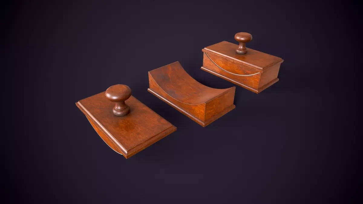This 3D model features a classic wooden rocker ink blotter and its dedicated curved stand.