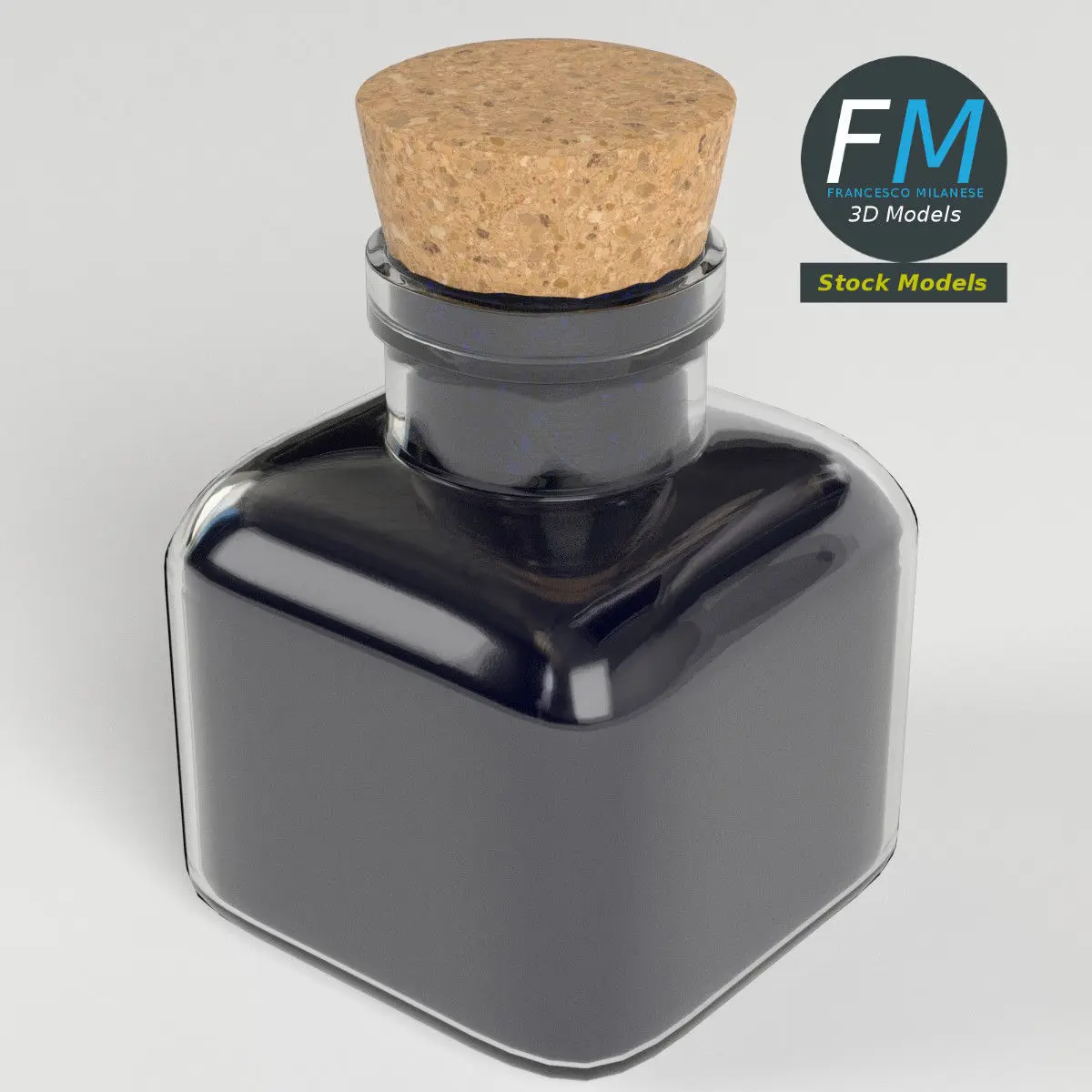 Vintage ink bottle 3D Model. 3 objects (bottle, ink, top), parented, each one with its own non overlapping UV Layout map, Material and PBR Textures set. Production-ready 3D Model, with PBR materials, textures, non overlapping UV Layout map provided in the package.Quads only geometries (no tris/ngons), no poles.Easily customizable: UV unwrapped geometries, so you can create new Textures (or modify the existing ones) using the UV Layout maps provided in the package (as png with alpha).Each Object, Material or Texture provided in the package has a unique, meaningful name.Made in Blender 3D 2.79 (Cycles materials) then exported to OBJ and FBX; materials and textures made in Substance Painter, exported for PBR, V-Ray, Unity, Unreal.PROMO IMAGES: the first image has been rendered in Cycles for Blender 3D 2.7x; in particular, you can find 11+ promo images in this description: