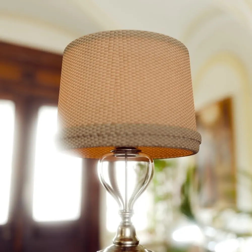 A vintage table lamp ideal for interior scenes like bedrooms.