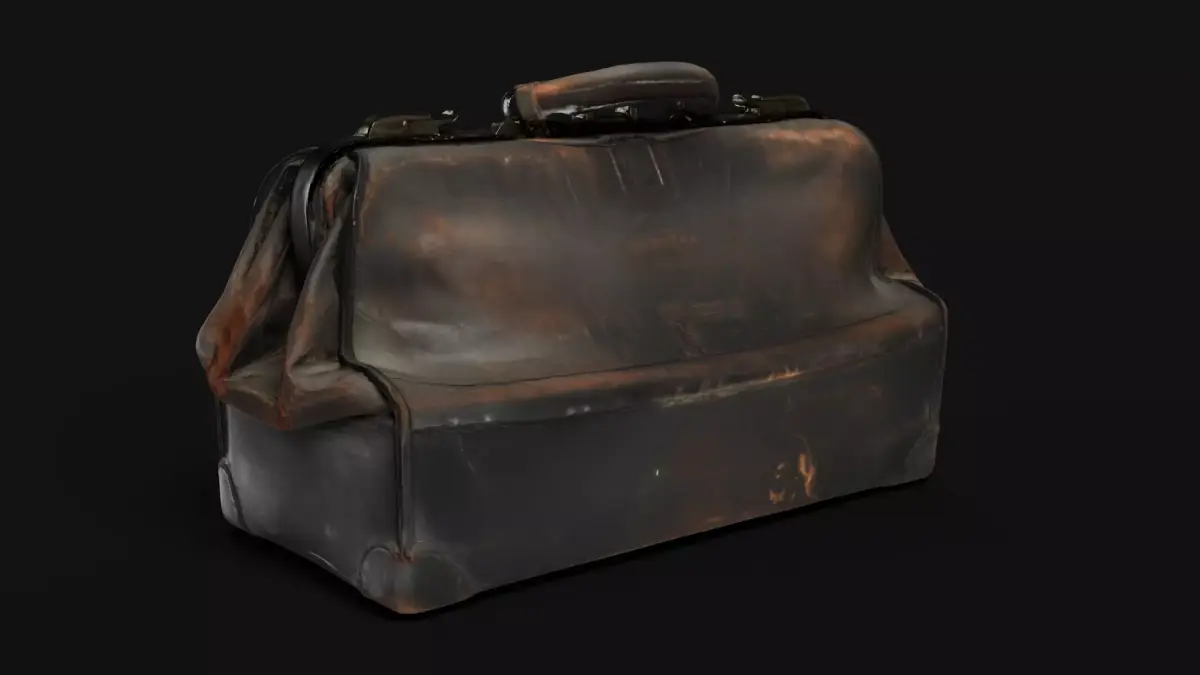 - Distressed Hardware: Weathered metallic clasps and a reinforced handle with realistic surface grime and oxidation.