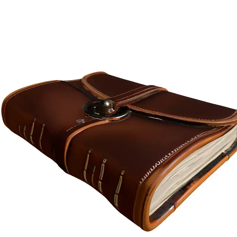 Presenting a meticulously crafted 3D model of a vintage leather journal, complete with an intricate antique-style metallic clasp. This asset showcases a rich, worn brown leather texture, detailed stitching along the edges, and an authentically exposed binding on the spine, giving it a handcrafted, aged appearance. The model is ideal for a wide array of digital projects, including immersive game development, where it could serve as a prop in fantasy RPGs, adventure games, or historical simulations. It's also perfectly suited for architectural visualization, adding character to library scenes, studies, or elegant interiors. Digital artists will find it invaluable for enhancing rendered illustrations, cinematic sequences, or creating realistic virtual environments. This highly detailed model features clean, optimized topology, making it ready for subdivision for extreme close-ups or for real-time applications after appropriate optimization. It is fully UV unwrapped with professionally crafted PBR textures for realistic material representation. Supporting popular 3D file formats such as GLB, OBJ, STL (primarily for visual representation, not ideal for printing due to thin pages), ABC, DAE, FBX, USD, and PLY, this asset ensures broad compatibility across various software platforms. Whether for high-fidelity static renders or optimized real-time experiences, this journal model will elevate the realism and aesthetic of your scenes.