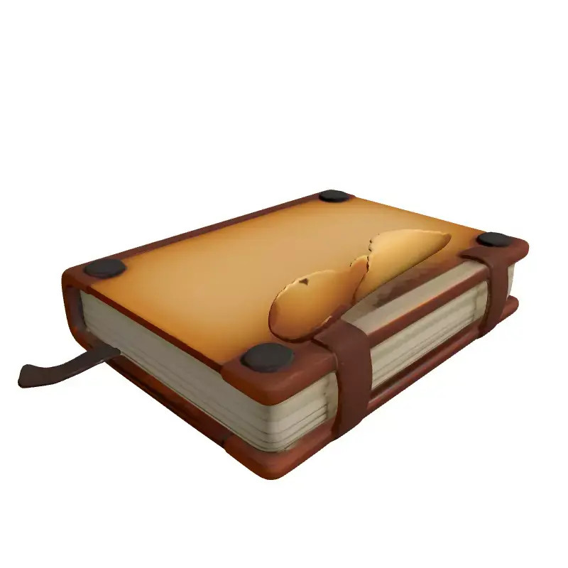 This meticulously crafted 3D model presents a vintage leather journal, exuding an air of history and mystery. Designed with a rich, distressed brown leather-like cover, it features an authentic integrated strap secured by ornate metal studs, adding to its antiquated charm. The internal pages are subtly aged, with a captivating torn corner detail on the top page, suggesting stories untold or forgotten lore. A delicate fabric bookmark ribbon further enhances its realistic appeal. This versatile asset is ideal for a myriad of digital projects, including historical or fantasy-themed game development as an immersive prop, enriching architectural visualization scenes like libraries, studies, or antique shops, and for creating captivating digital art compositions or augmented reality (AR) experiences. Its clean topology and efficient UV unwrapping ensure seamless integration and rendering across various platforms. The model is prepared with high-quality PBR textures to deliver stunning visual fidelity in both real-time applications and high-resolution static renderings. Supported file formats include GLB, OBJ, FBX, USD, and DAE, ensuring broad compatibility for your creative workflow. The attention to detail makes it perfect for close-up shots and enhancing the atmosphere of any digital environment.