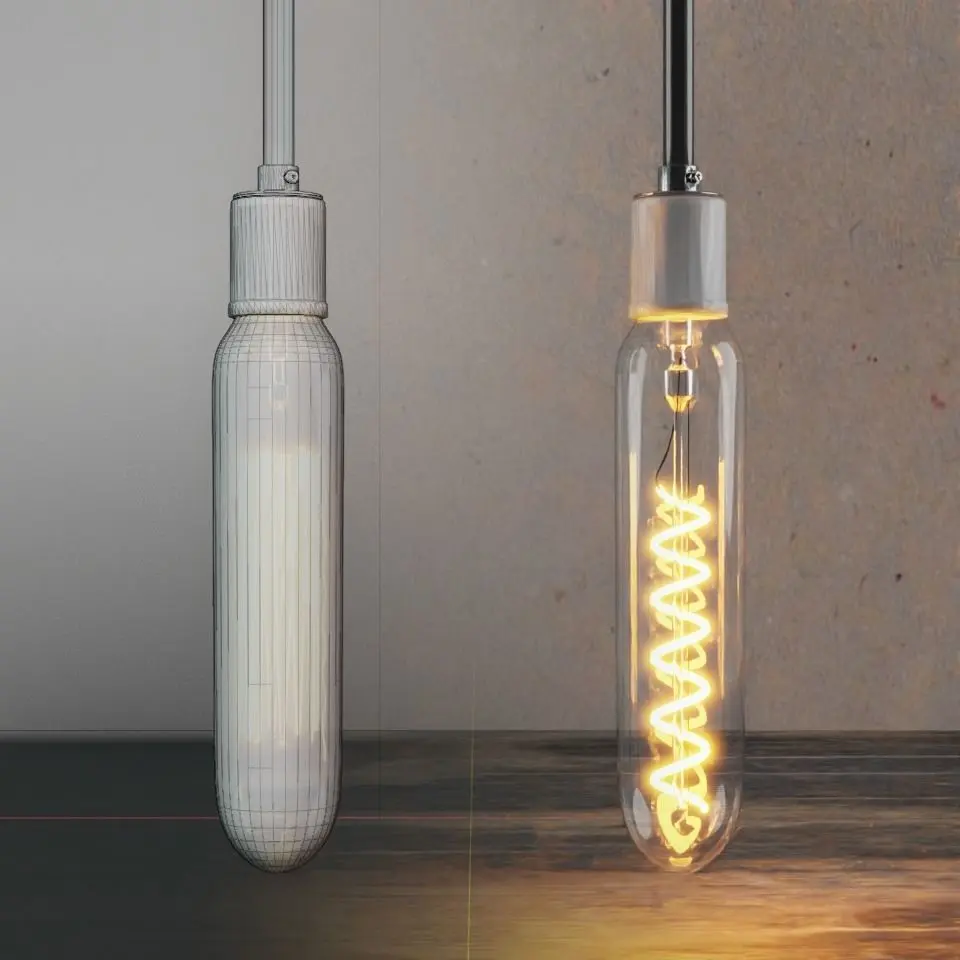 Vintage LED and Edison Bulb - Long - comes with OBJ and its MTL file as well as an FBX file, STL and Collada DAE