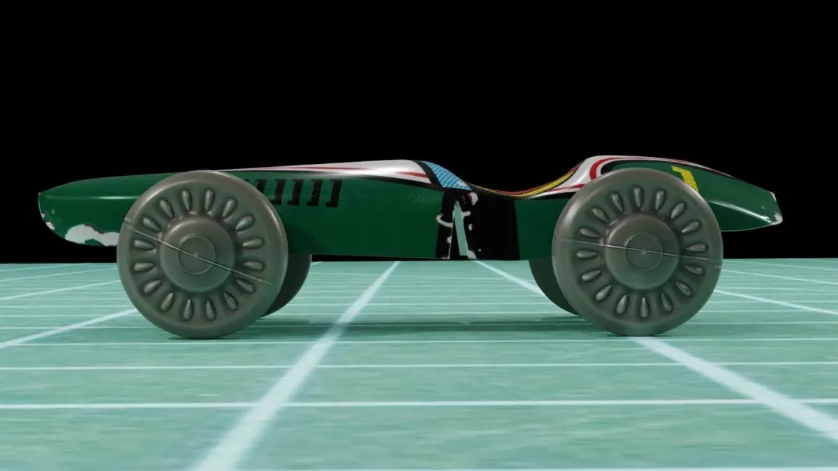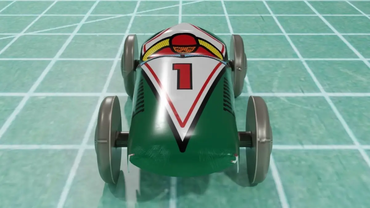 One 1/2 inches long vintage tin racing car toy modeled on blender PBR.