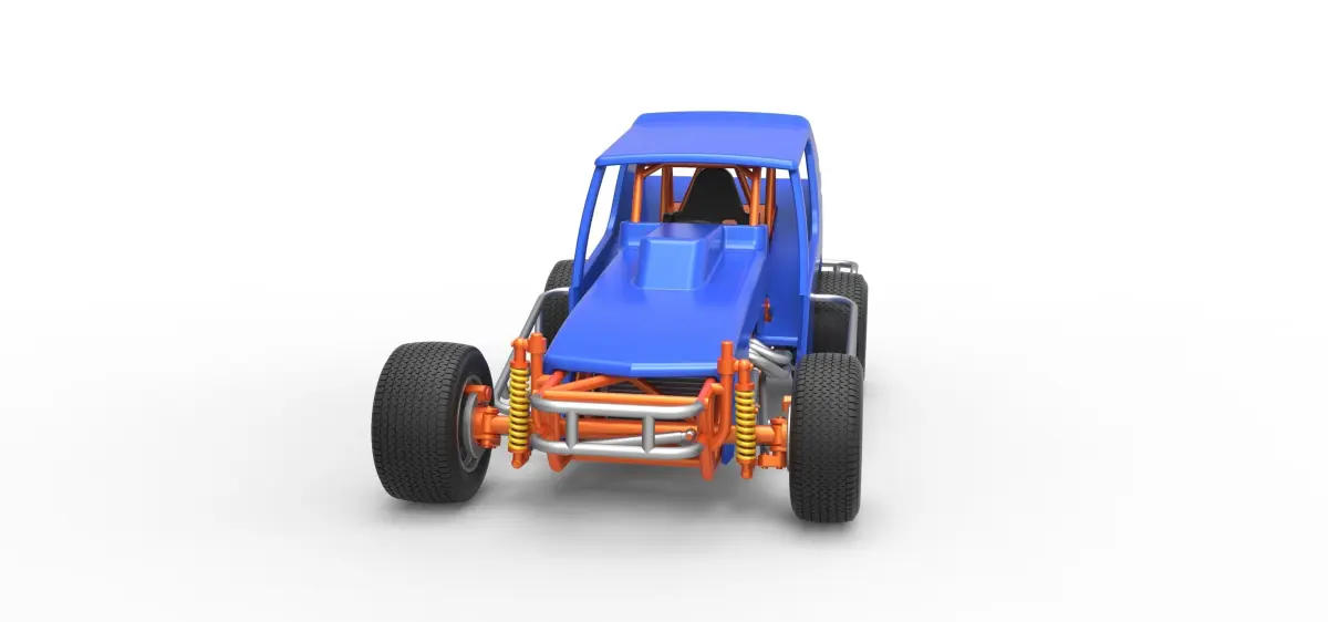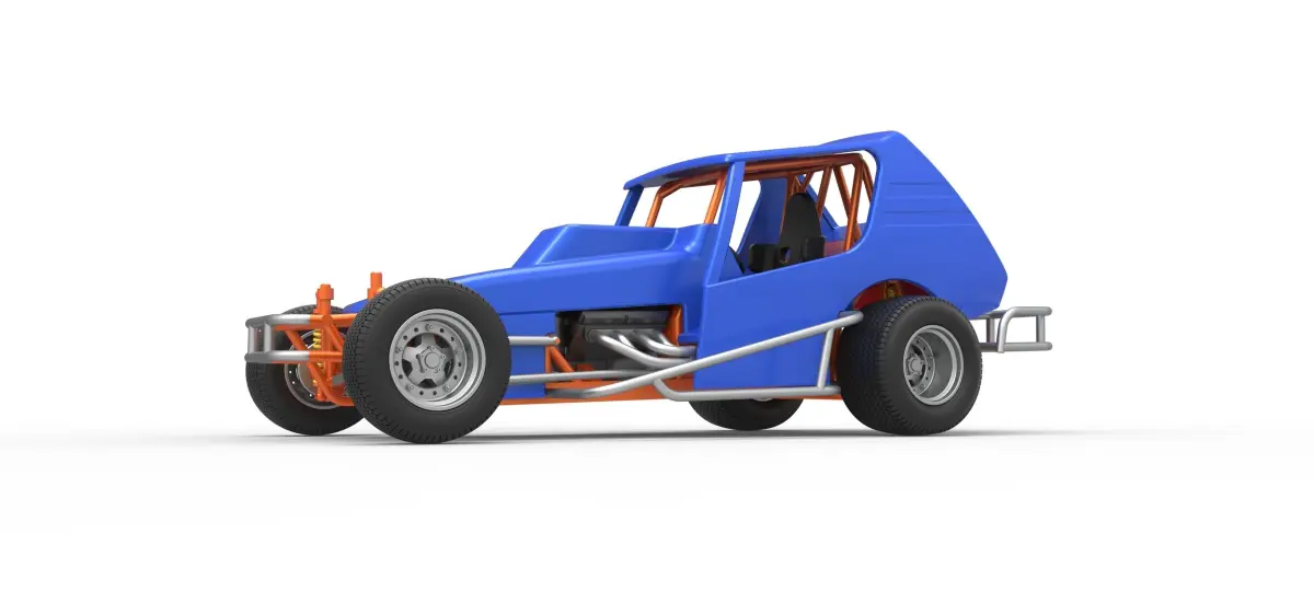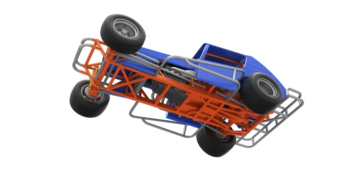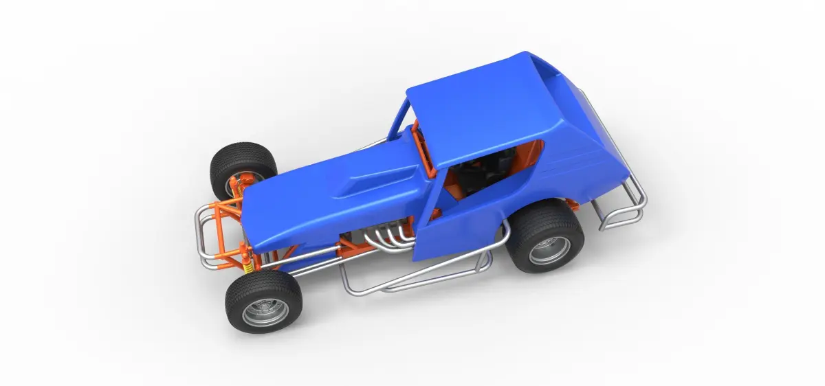 The model consists of parts: Body, Engine air intake, Engine left part, Engine main part, Engine right part, Front left rim, Front left tire, Front right rim, Front right tire, Left exhaust pipes, Radiator, Rear left tire, Rear right tire, Rear rims, Right exhaust pipes, Seat, Shell, Shifter, Steering wheel, Tank.