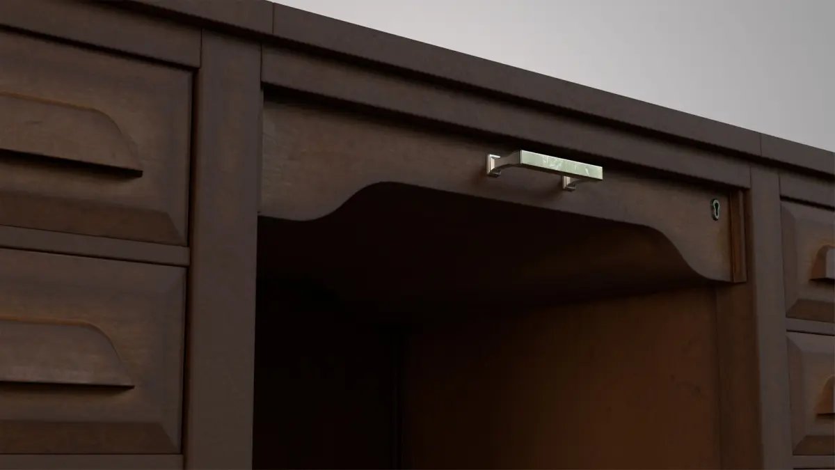 This realistic and detailed vintage office desk is ideal for architectural visualization, period interiors, game environments, or historical scenes.