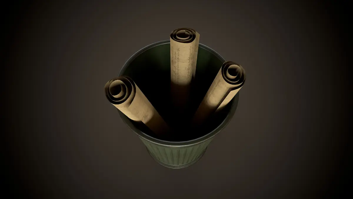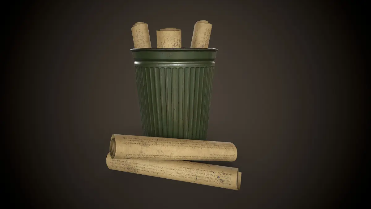The bin can be displayed empty or filled with crumpled paper waste, adding versatility to your scene.