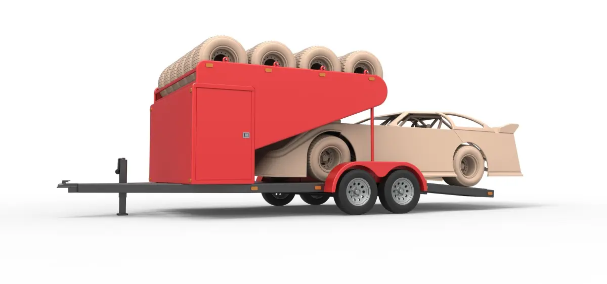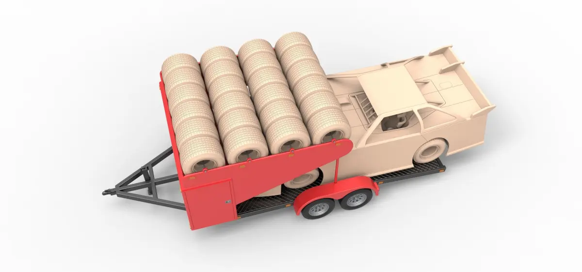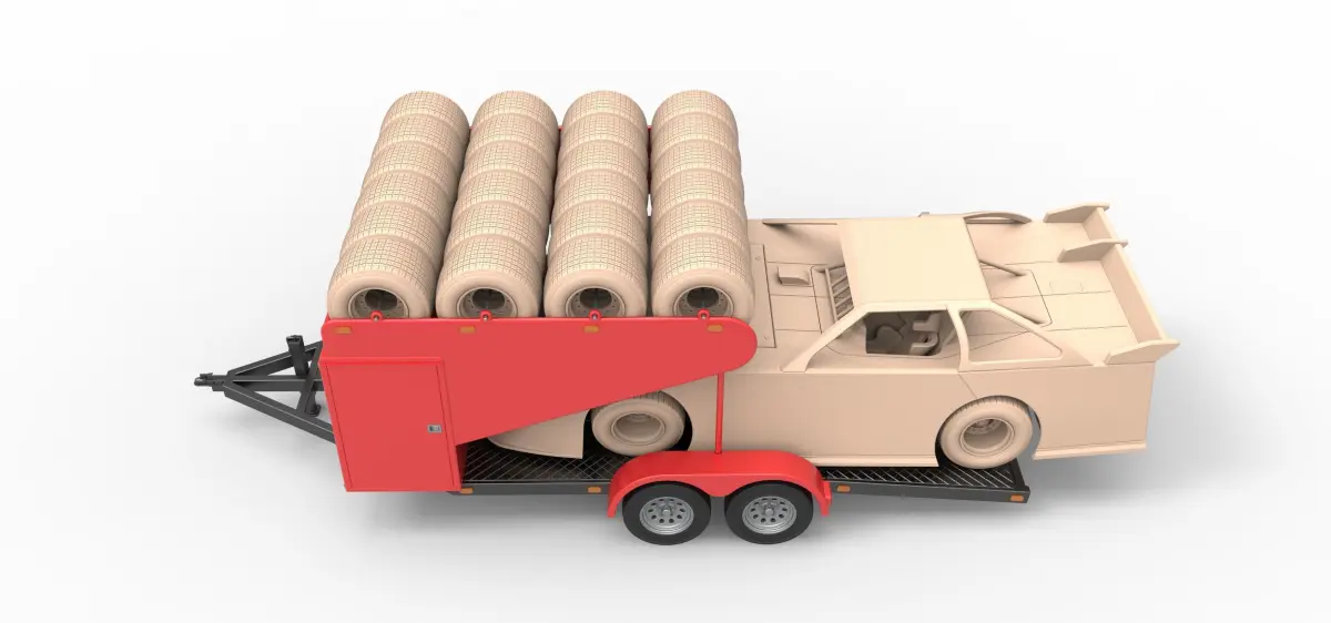 The race car and spare wheels are not included to the model.