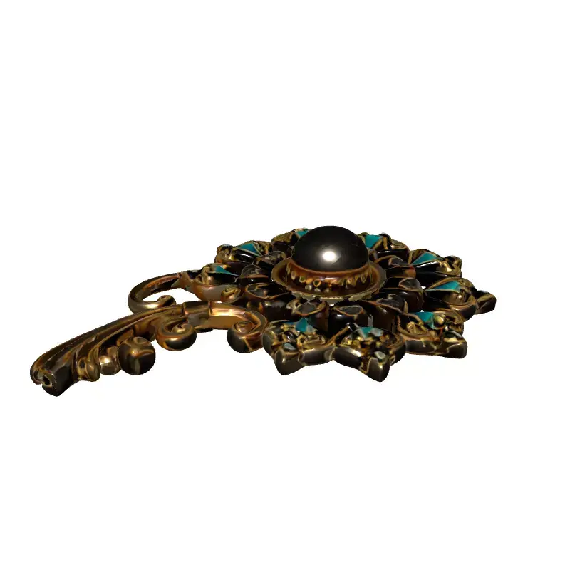 This highly detailed 3D model meticulously captures the exquisite elegance of a vintage or antique-style brooch. It features a prominent, lustrous central pearl, serving as a captivating focal point. Surrounding the pearl is an array of sparkling clear gemstones, each carefully placed to enhance its luxurious appeal. These elements are beautifully set within an ornate, aged gold metallic framework, showcasing intricate craftsmanship. Furthermore, intricate teal-colored enamel-like accents are integrated into the design, adding a distinct touch of sophistication. The overall aesthetic, with its delicate filigree and scrollwork, is reminiscent of classic jewelry and historical artistry. This versatile model is ideally suited for a wide range of creative applications, including historical game development and immersive augmented reality (AR) experiences. It’s also perfect for high-fidelity digital art projects and sophisticated architectural visualization scenes where a touch of luxury is desired. The asset is optimized for both real-time applications and static renderings. It boasts clean, efficient topology, ready for subdivision to achieve even greater levels of detail for close-up renders. Fully UV unwrapped, this model comes with high-resolution PBR (Physically Based Rendering) textures, ensuring a realistic and visually rich appearance across various rendering engines. Supported file formats include GLB, OBJ, STL, ABC, DAE, FBX, USD, and PLY, guaranteeing broad compatibility with most 3D software and platforms. This elegant brooch model promises to add a touch of timeless beauty and historical authenticity to any digital collection.