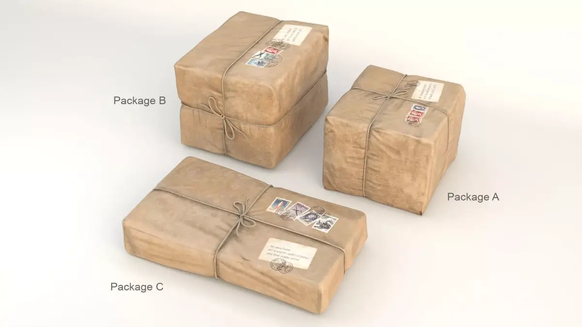 Geometry: This pack contains 3 different packages, named, near to 0,0 coordinates and in real size. At the same time, the assets are made with low poly clean mesh and only with quads. The vintage packages are unwrapped and not overlapping. The package A has 3315 polys, package B has 2564 polys and package C has 2360 polys.