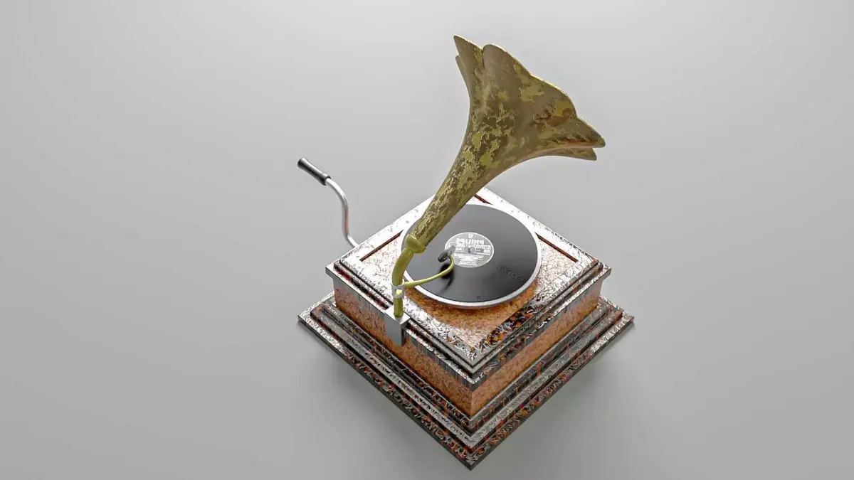 High-quality 3D model of a vintage phonograph (gramophone), a classic music player from the early 20th century. The model features a detailed horn, hand crank, turntable, and realistic textures, making it an ideal asset for historical visualizations, retro interiors, animations, or as a decorative prop in games.