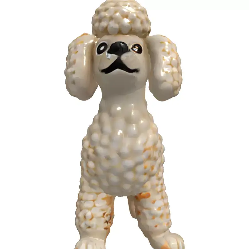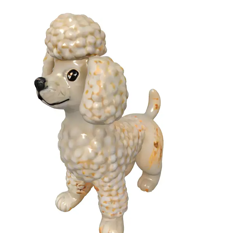 This charming 3D model presents a delightful stylized poodle dog figurine, meticulously crafted with a distinct vintage or aged aesthetic. The model features intricate sculpted details mimicking a fluffy texture, complemented by subtle distressing and worn accents that add character and realism, suggesting it could be made from ceramic, porcelain, or a similar ornamental material. It is perfectly suited for a wide array of digital applications, including enhancing interior design visualizations, populating virtual home environments, or serving as a decorative element in architectural renders. Digital artists can leverage this model for nostalgic scenes, collectible displays, or as a unique focal point in creative compositions. Game developers might find it useful as a unique environmental prop for themed levels, while its detailed design also makes it an excellent candidate for high-quality static renders and digital art projects requiring a touch of antique charm. The model is prepared with clean topology and is ready for subdivision to achieve even finer detail, ensuring versatility across different use cases. It comes fully UV unwrapped and includes high-resolution PBR textures to deliver realistic material properties and surface imperfections. Supported file formats include GLB, OBJ, STL, FBX, DAE, USD, PLY, and ABC, making it widely compatible with major 3D software and engines. This model is optimized for both static renderings, where its fine details can truly shine, and can be adapted for real-time applications such as augmented reality (AR) or virtual reality (VR) experiences.