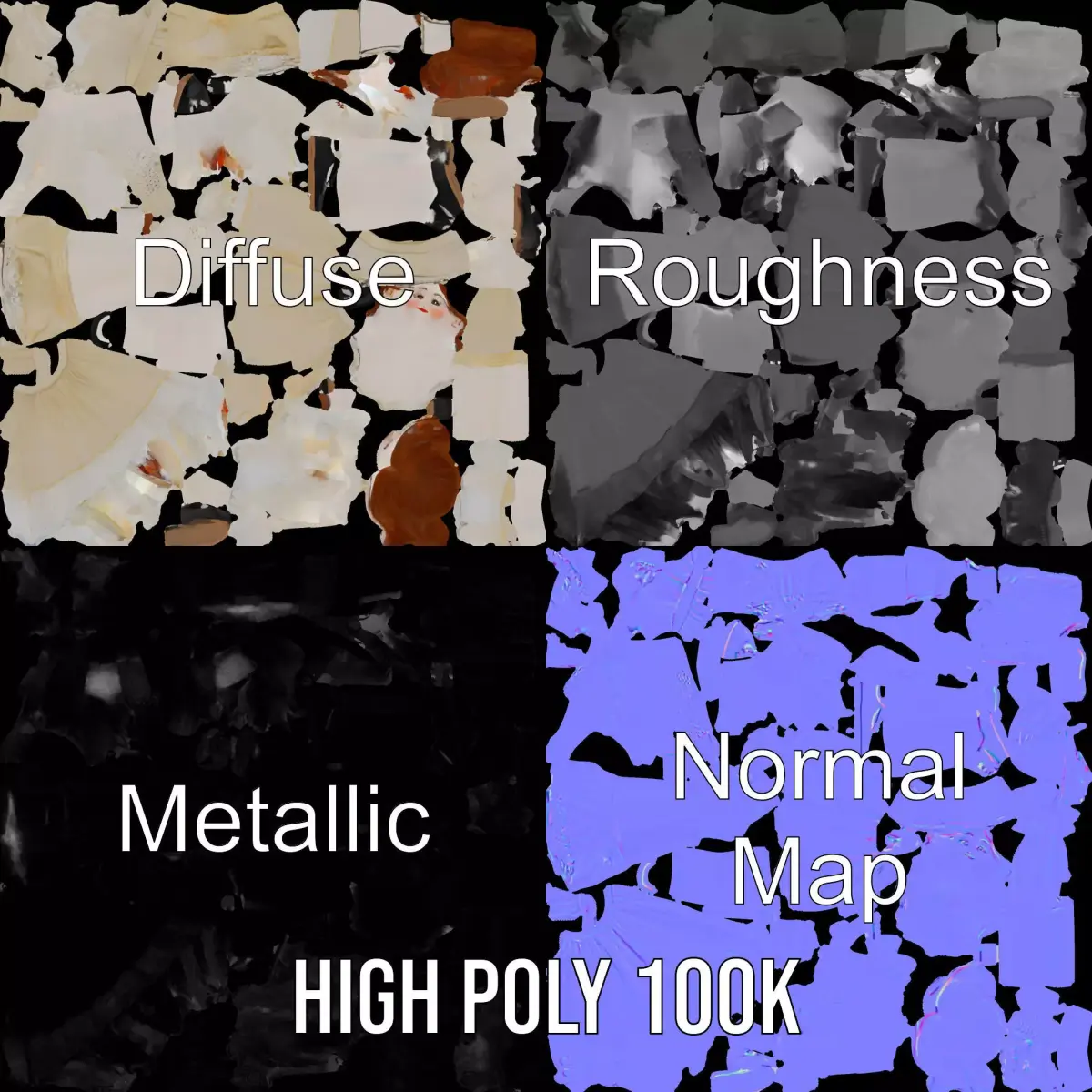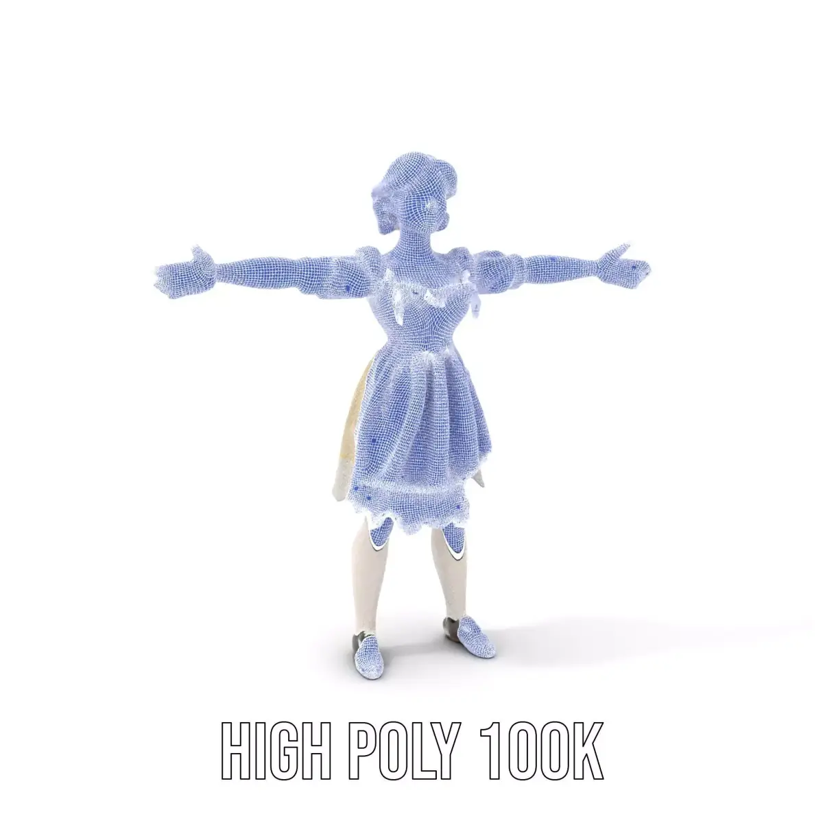 This vintage porcelain doll model brings an elegant and timeless design, perfect for nostalgic scenes or antique-themed projects. Each model has 3 levels of detail: low-poly(1000 triangles for mobile), middle-poly(10 000 triangles for environment), and high-poly(100 000 triangles), which allows for the use of this model in production rendering(such as 3ds max, Maya, Cinema4d, Blender, Vray/Corona/Cycles and all other ), game engines(Unity and Unreal compatible), and interactive presentations, providing a choice of detail based on the LOD System principle. The model's textures are PBR, Diffuse, NormalMap, and reflection/roughness/metallic, which are suitable for any modern rendering engine. All models accurately unwrapped and has no overlapping UV. The delicate lace dress and carefully crafted facial features highlight the model's quality, making it ideal for animation, virtual sets, or historical recreations. All textures are 4096*4096 in size. If you liked this model, please like and leave a comment.