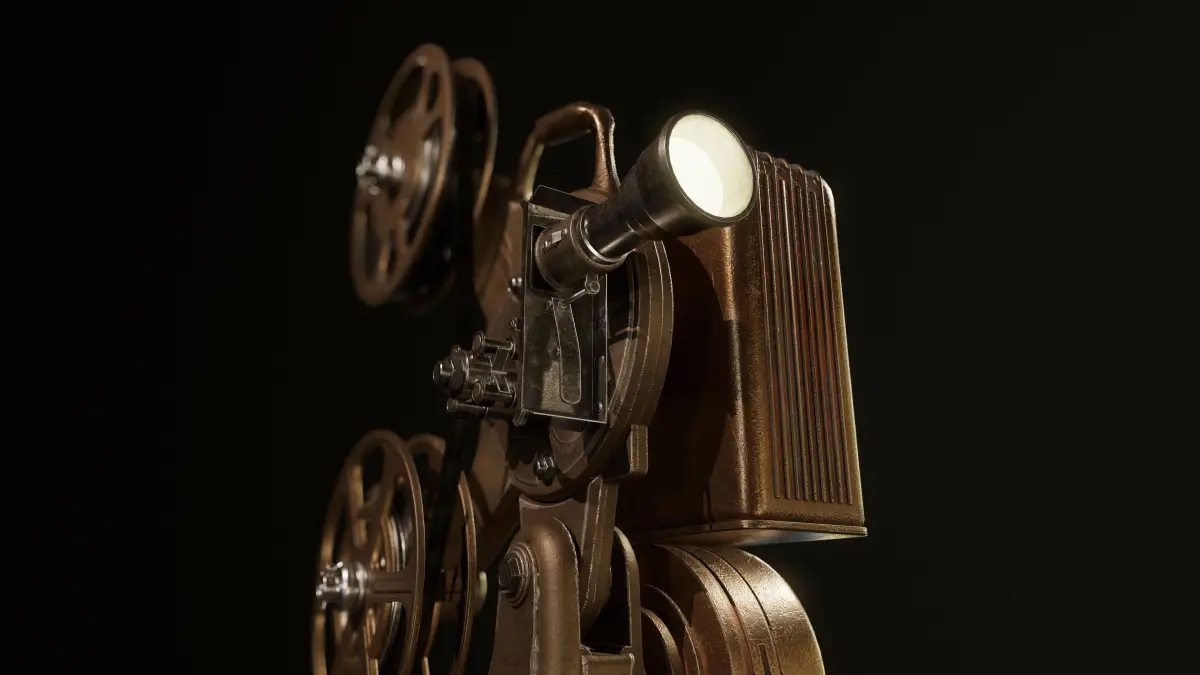 HomeCatalogVintage projector with table and storage box Low-poly 3D model