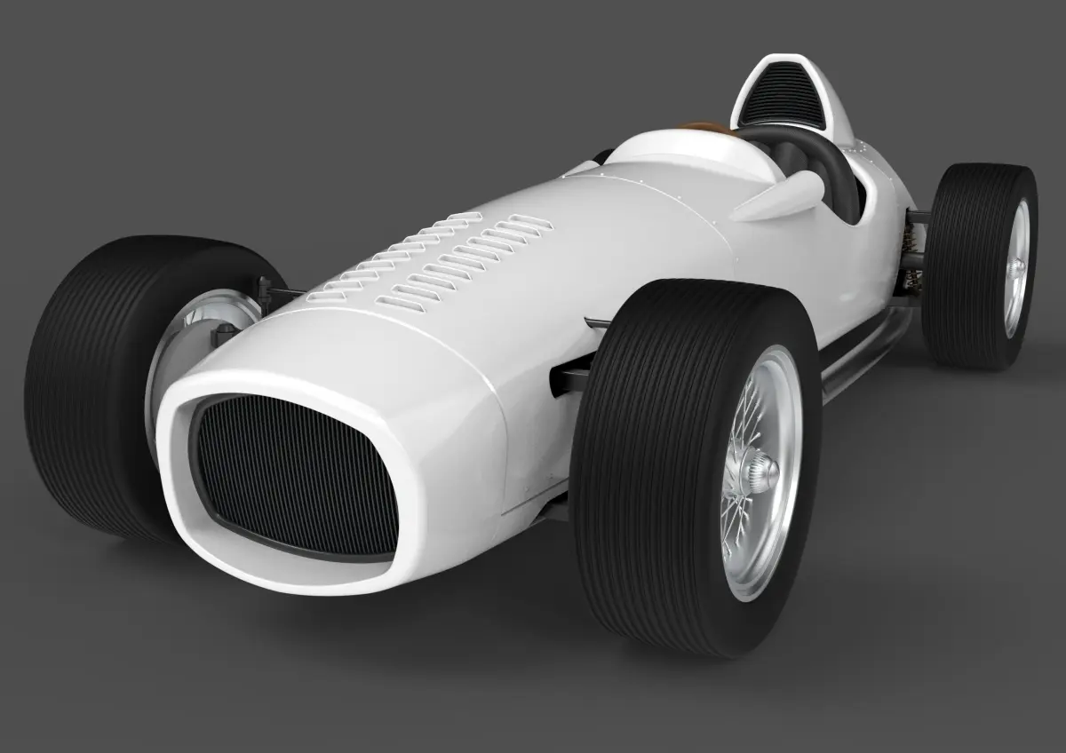 This is a concept model of a vintage race car. It is made in real life scale and size and trying to keep good aesthetics. It is also a simplified model, consisting only of the main parts of a real car, just meant to make a good visual impresion.
