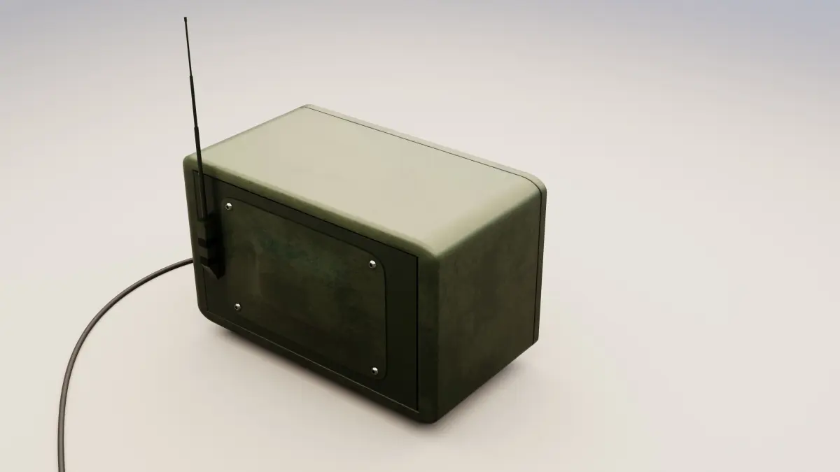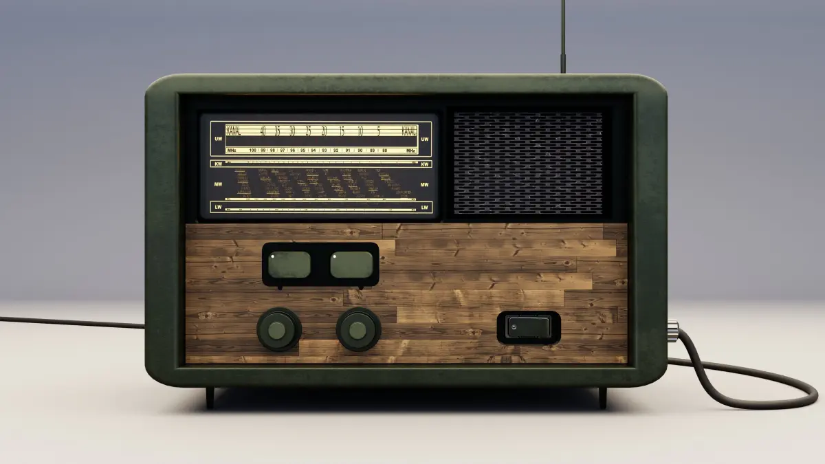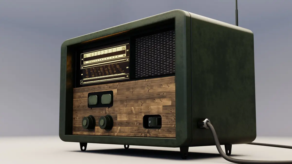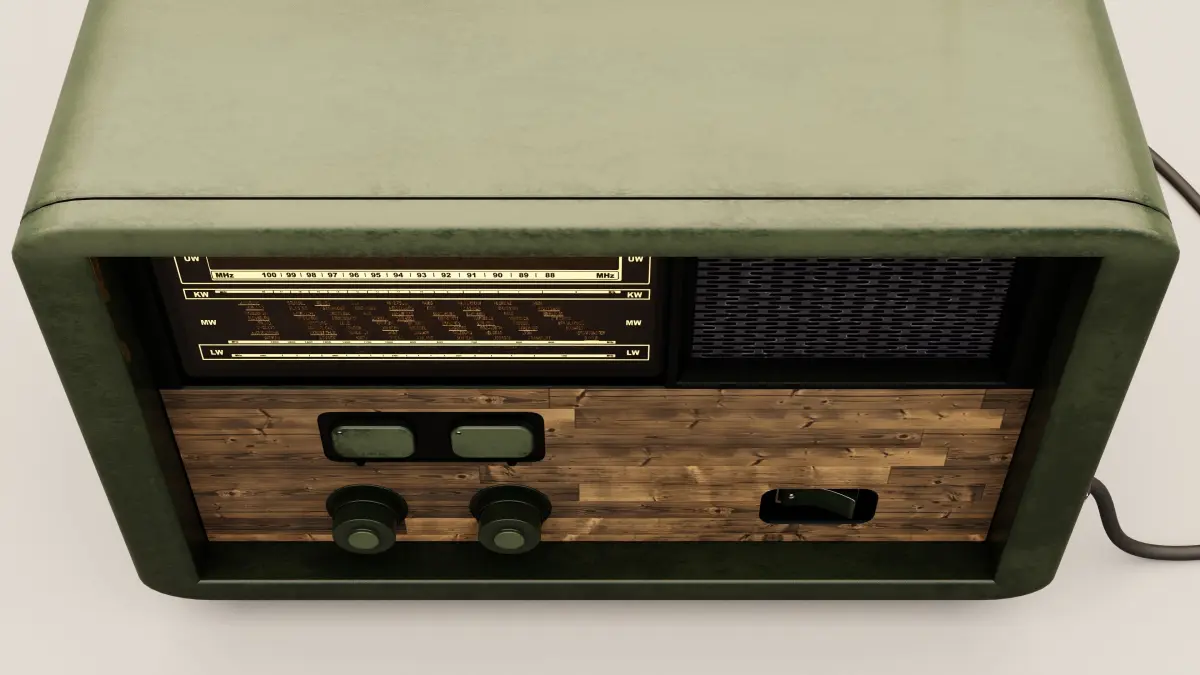 Vintage radio with materials, textures, switches, and cable